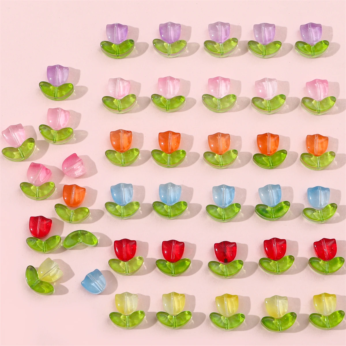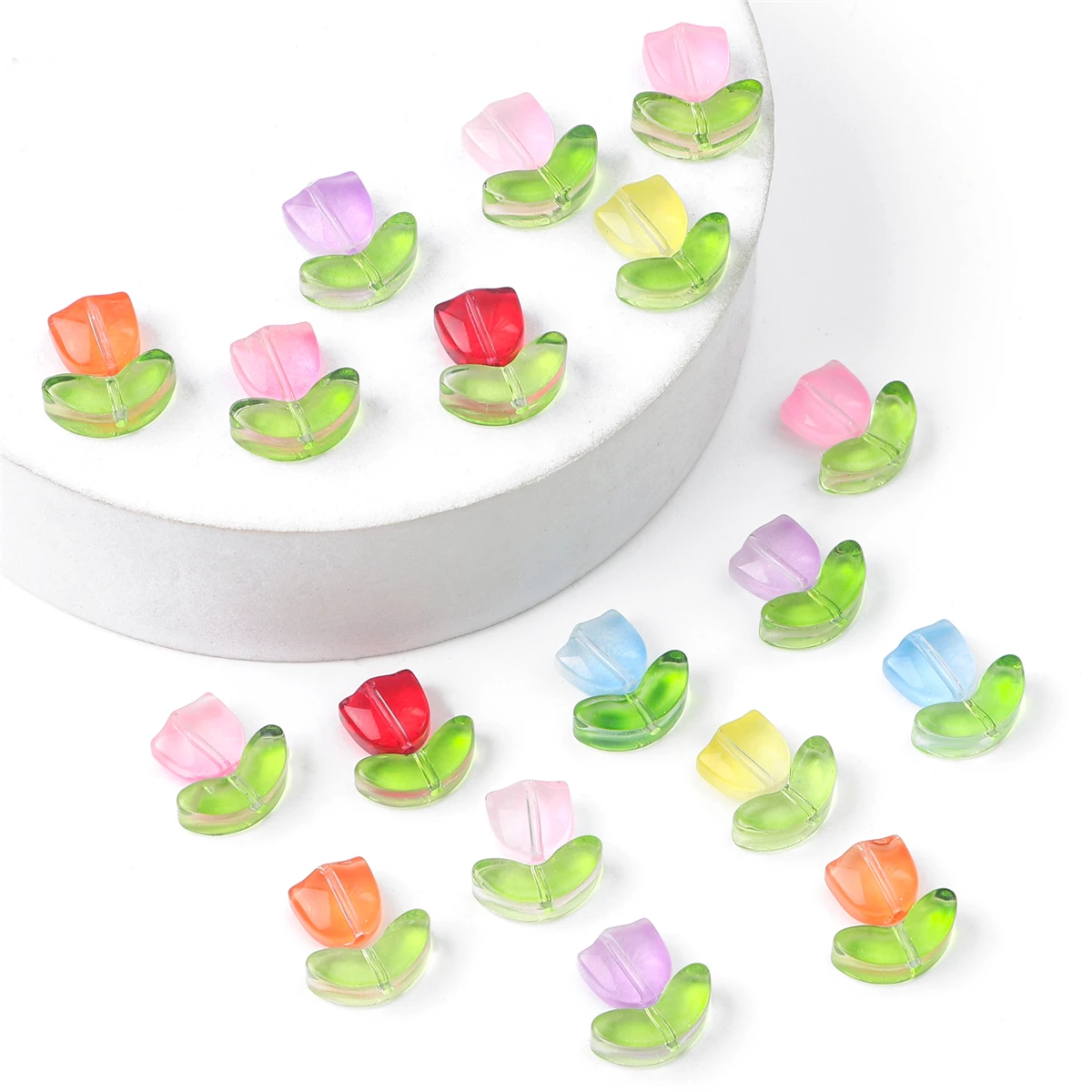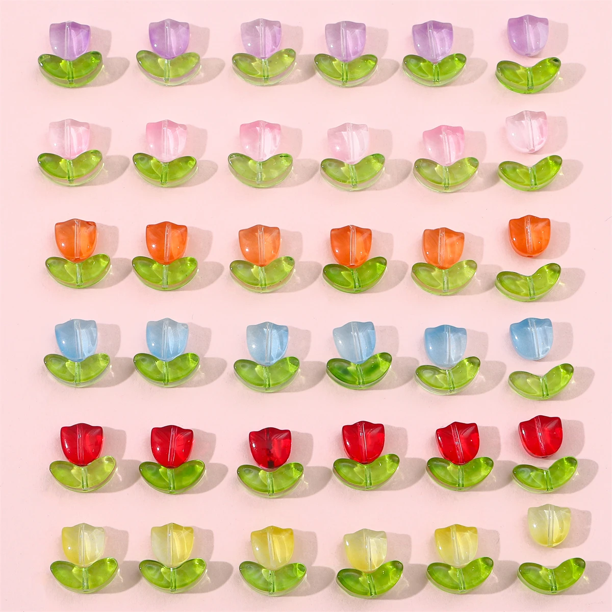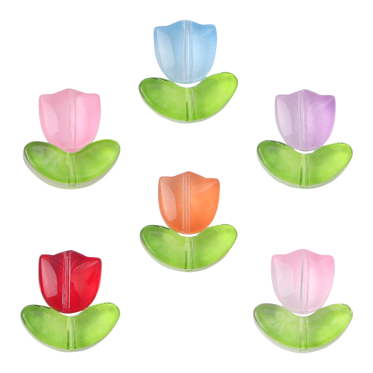 25Sets/Bag Glass Tulip Flower Leaf Beads Handmade DIY Jewelry Earrings Necklace Accessories Materials
