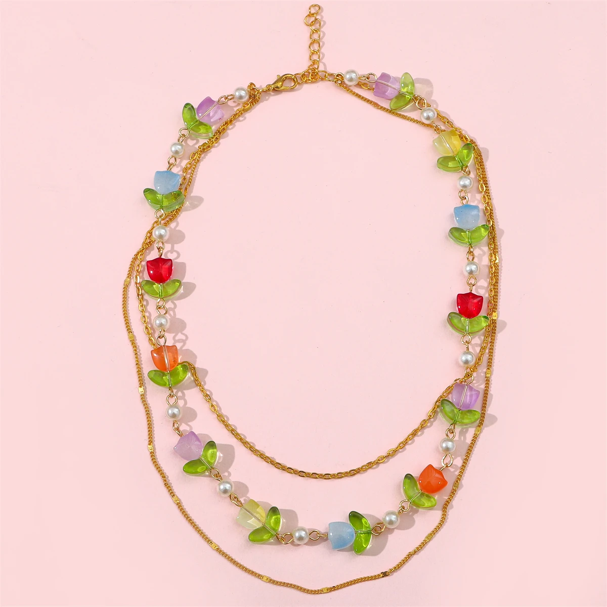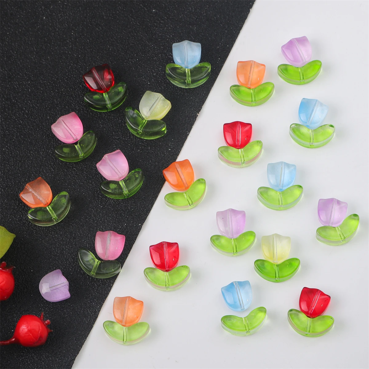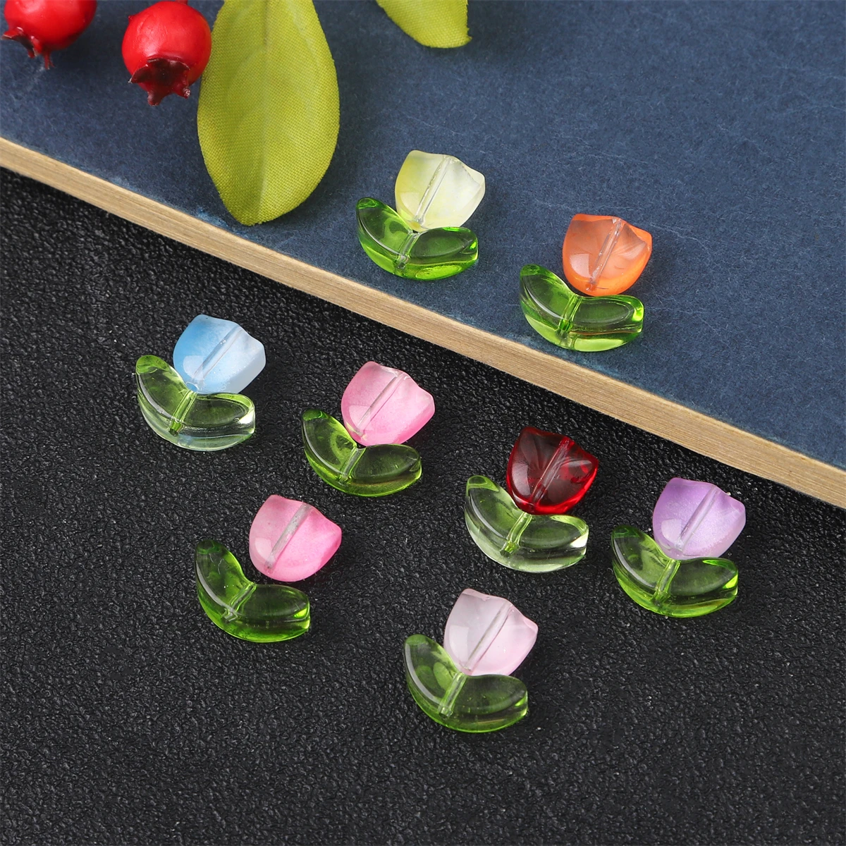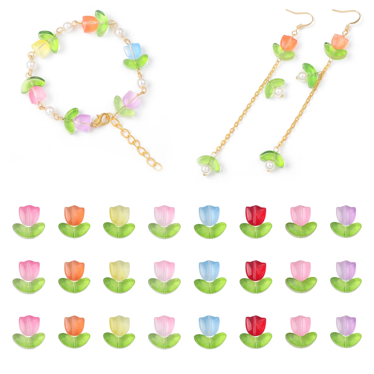 25Sets/Bag Glass Tulip Flower Leaf Beads Handmade DIY Jewelry Earrings Necklace Accessories Materials