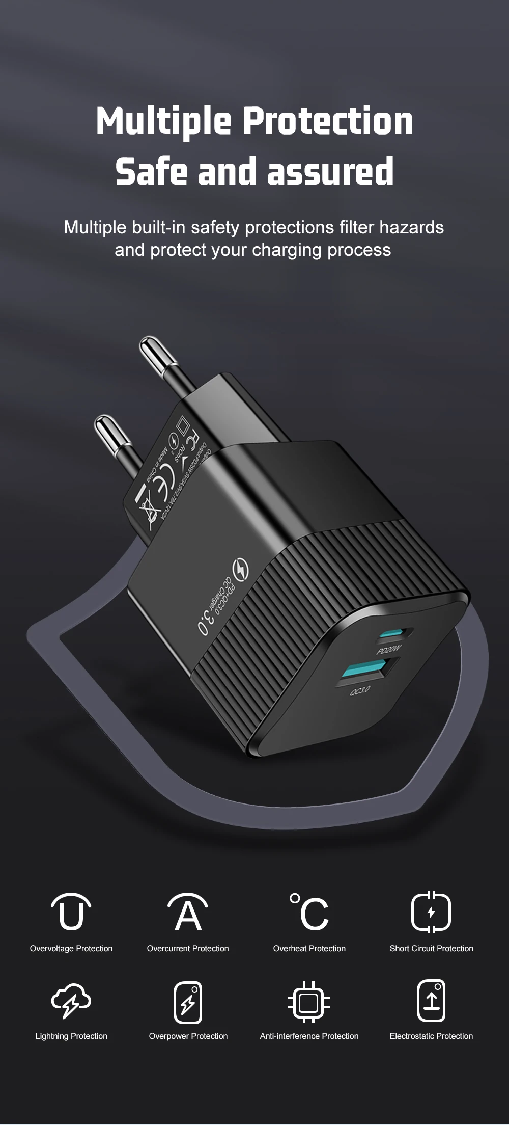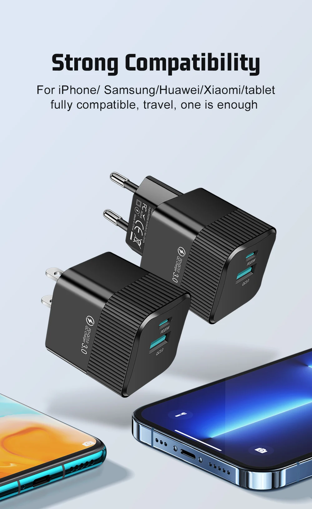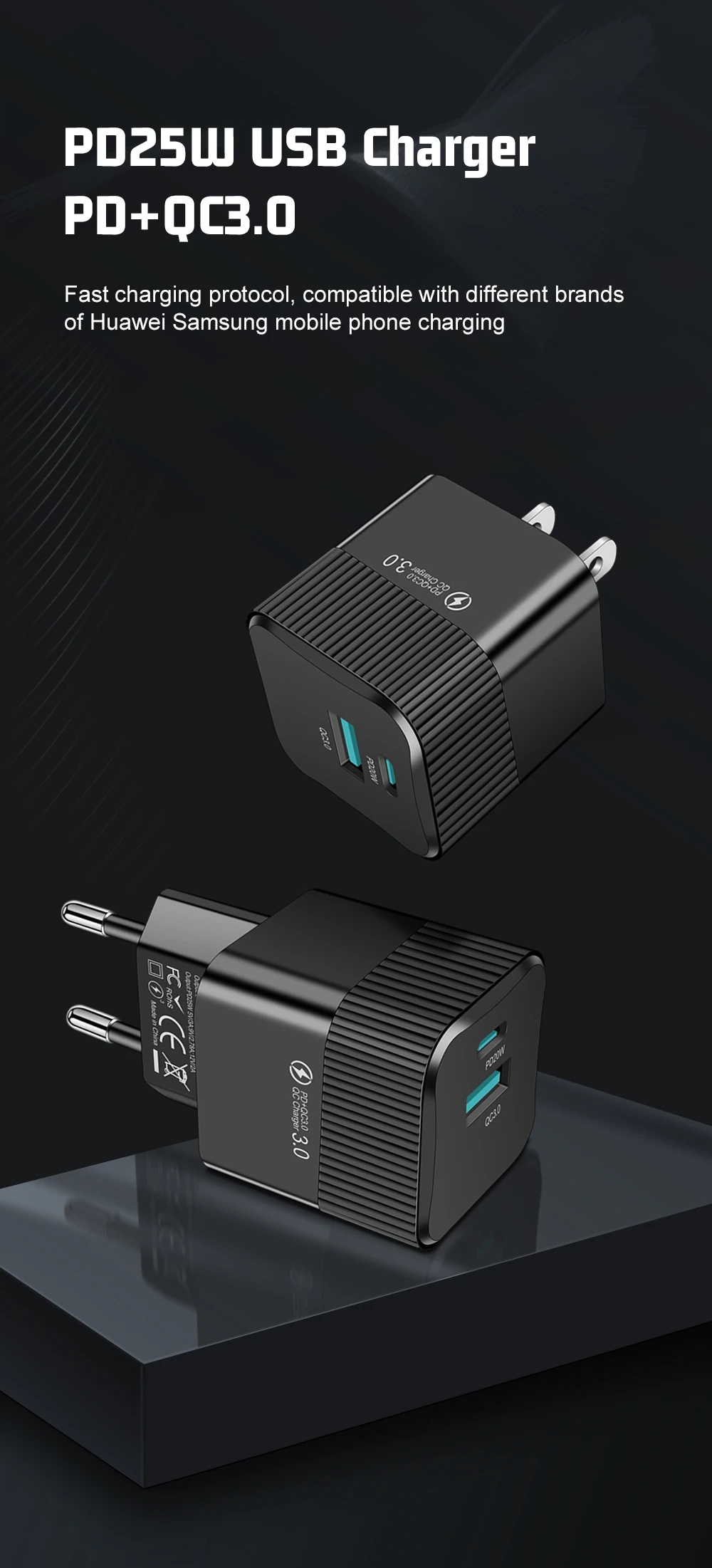 25W USB PD Fast Charger 2 Ports Quick Charging QC3.0 Phone Charge Adapter For iPhone Xiaomi Huawei Samsung Type C Wall Adapter