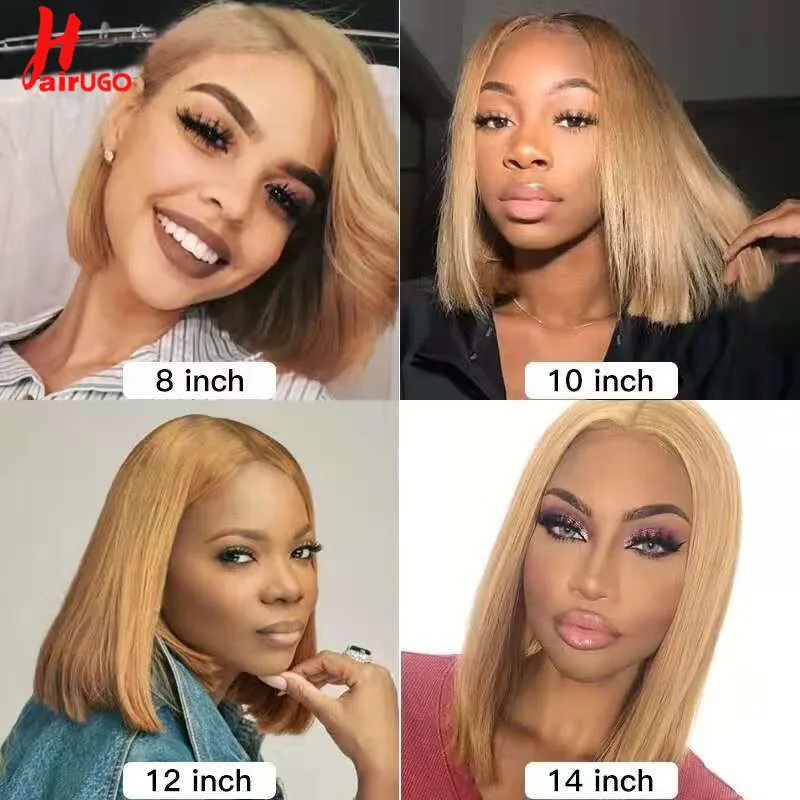 27# Honey Blonde Bob Wigs Brown 4×4 Lace Closure Wigs Human Hair Brazilian Remy Straight Lace Frontal Wigs For Women HairUGo