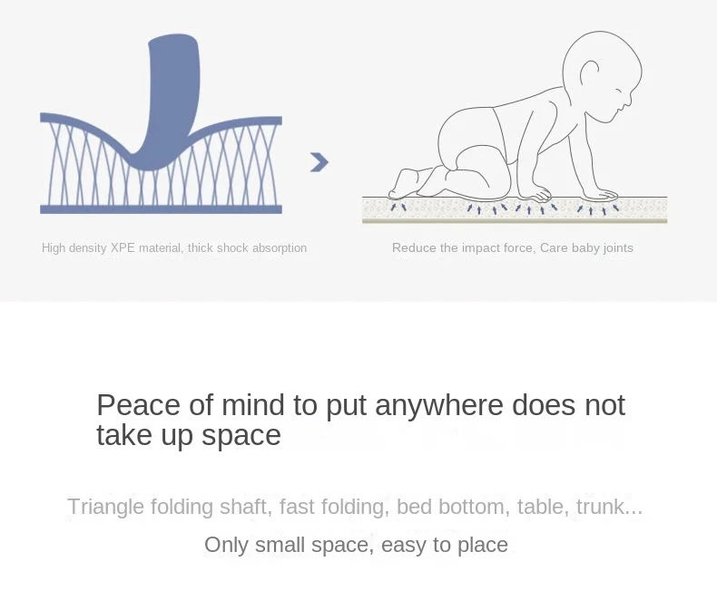 1. Crawling is the beginning of the baby’s exploration of the world. During the crawling period, the baby needs a soft and moderate, shock-resistant anti-skid crawling pad to effectively protect the small head, knees and wrists.