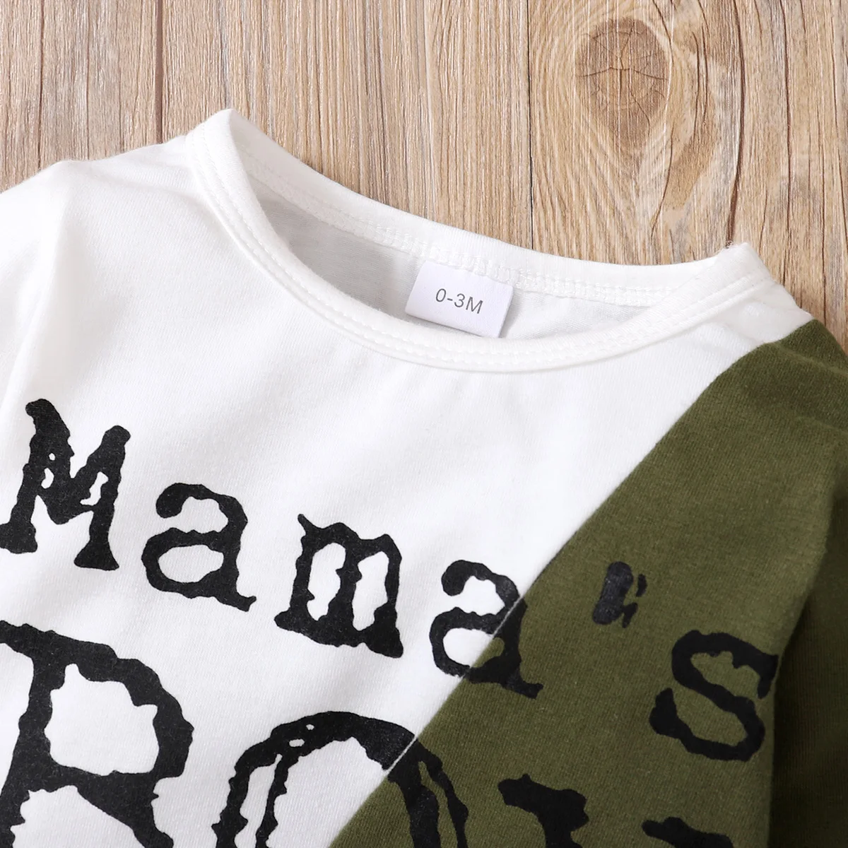 2PCNewborn Baby Boy Color Blocking Letter Long Sleeved Bodysuit and Pants set Autumn Fashion set for Toddlers aged 0-18 Months