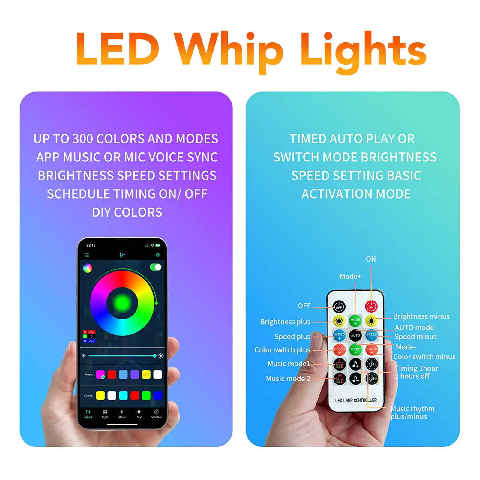1 x 2FT RGB LED Whip Lights