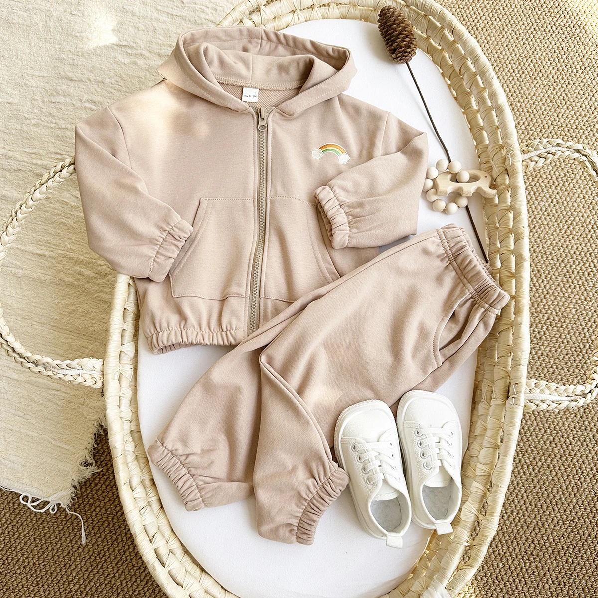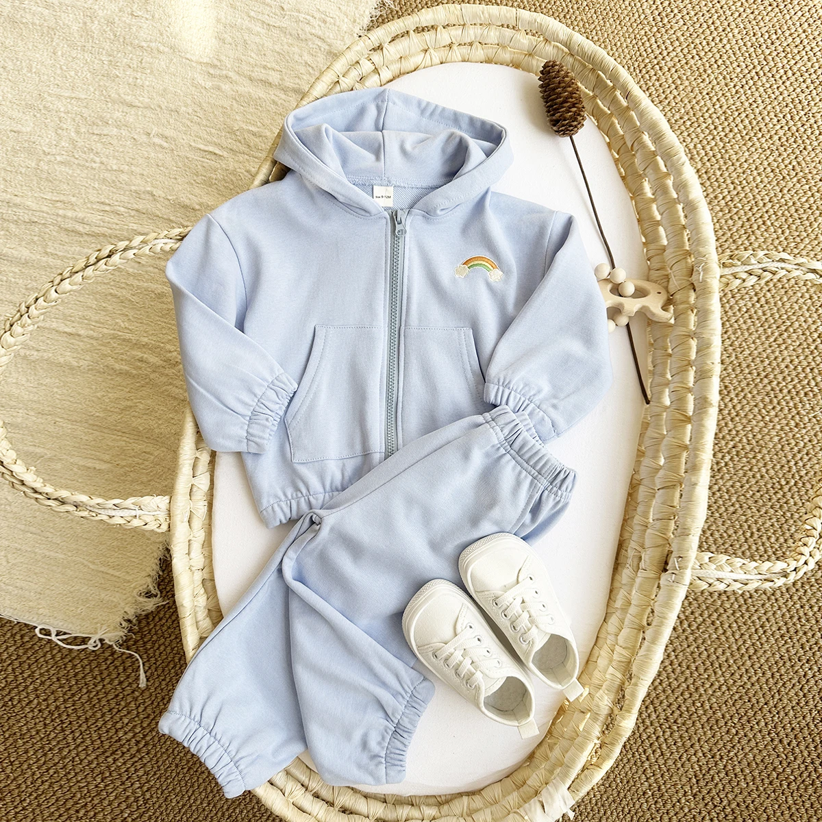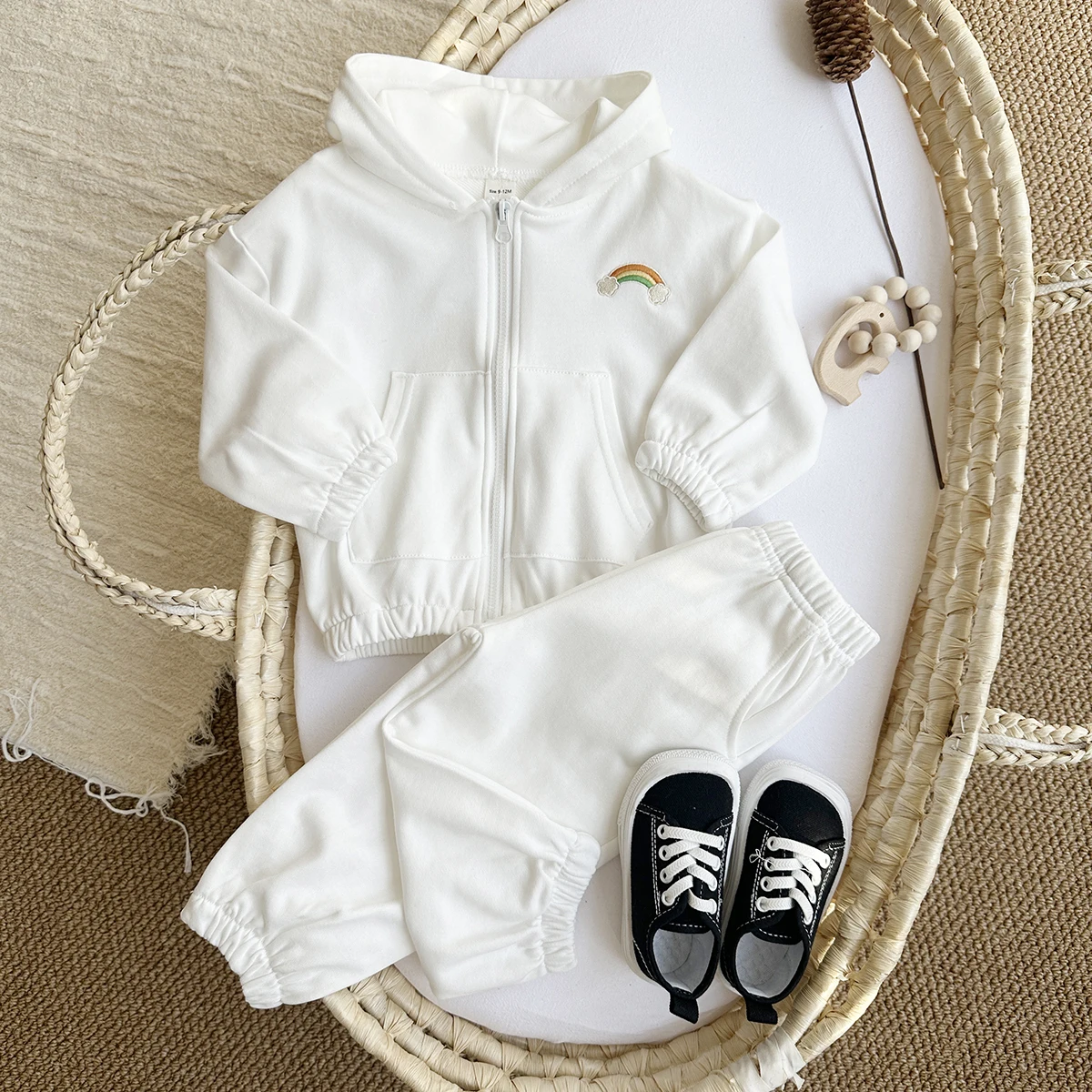2Pcs Baby Girl Clothes Infant Outfit Rainbow Embroidery Zipper Hoodie Top+Pants Tracksuit Long Sleeve Newborn Sets Kids Clothing