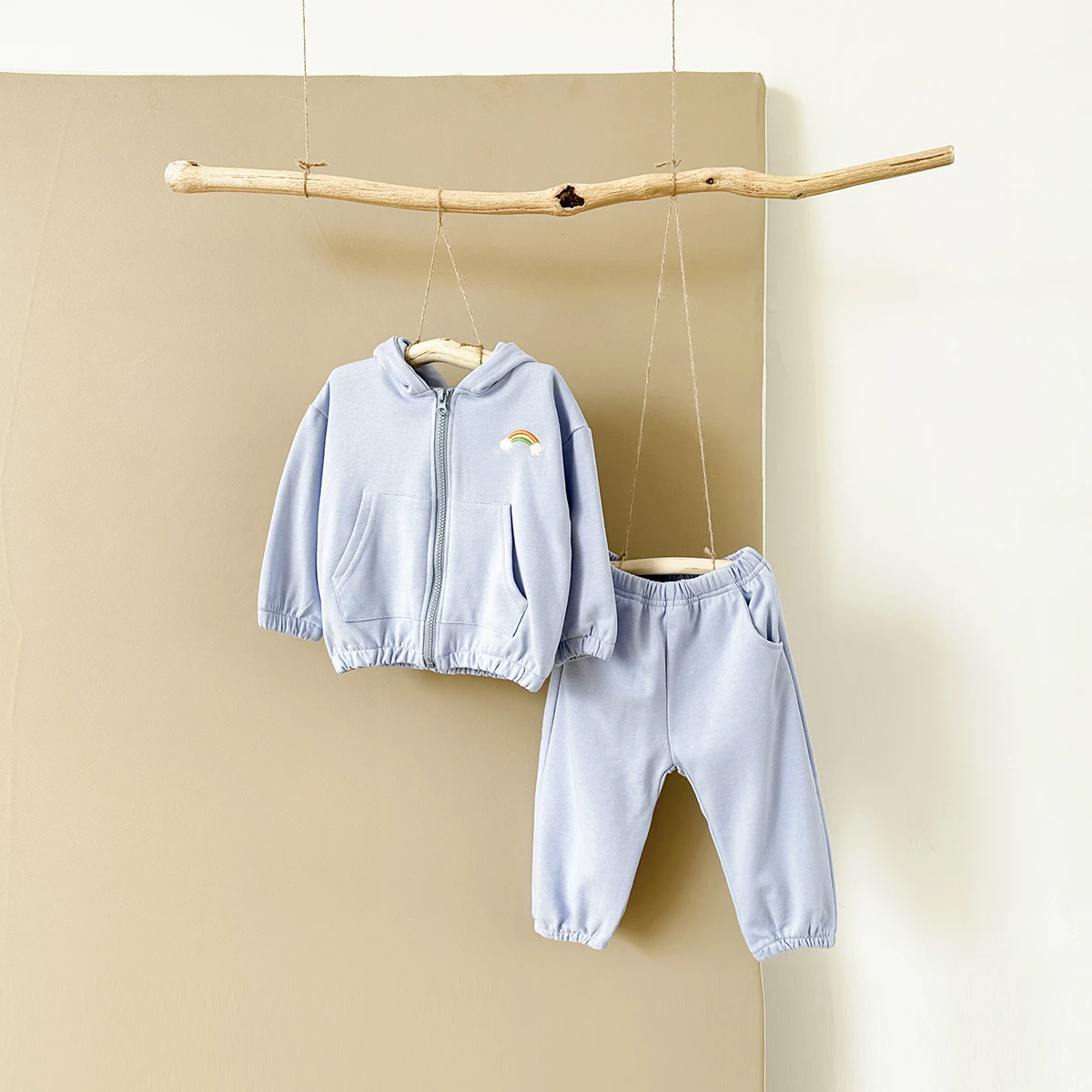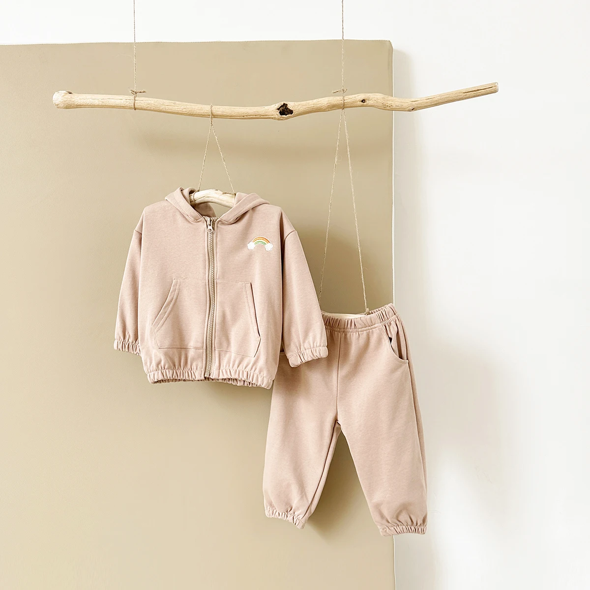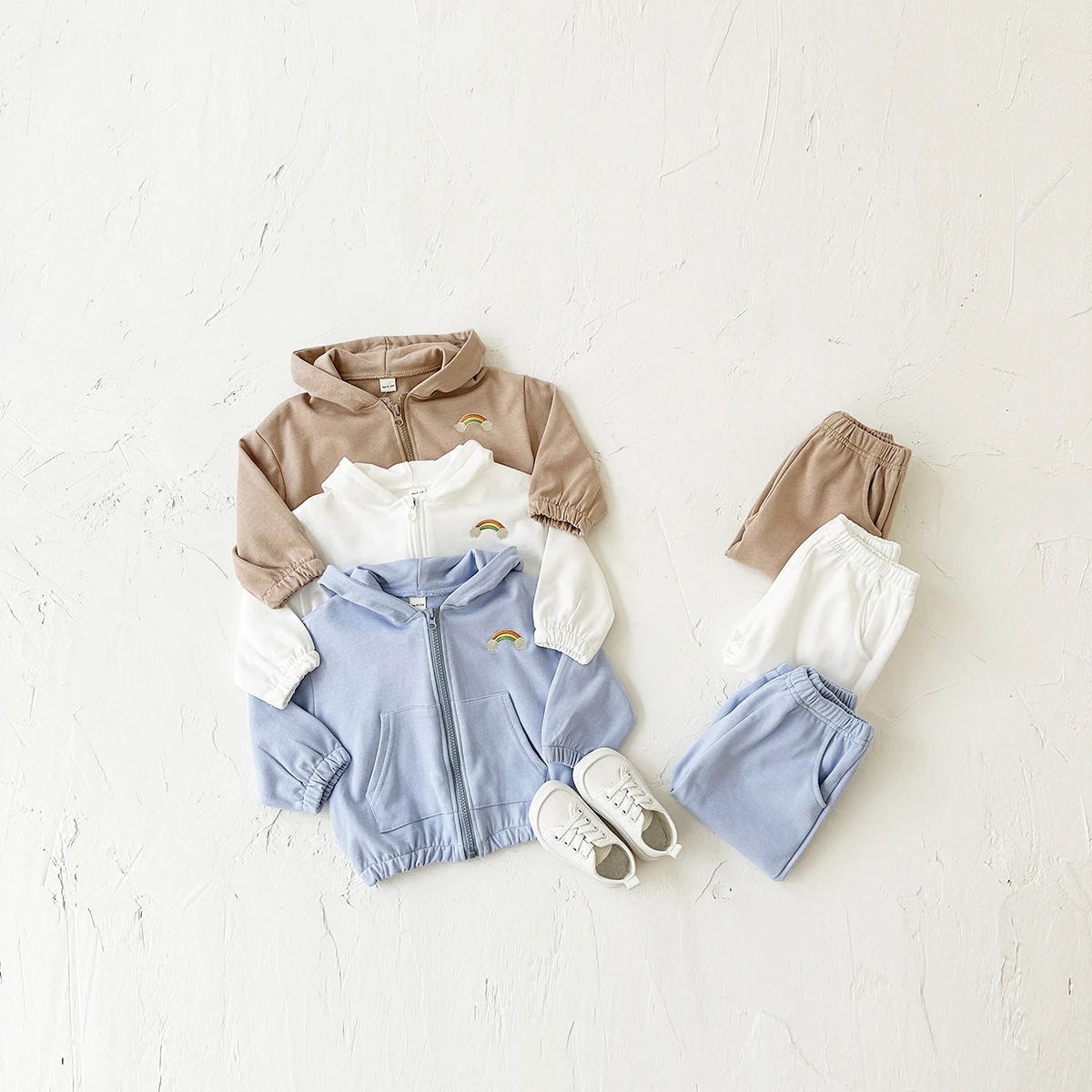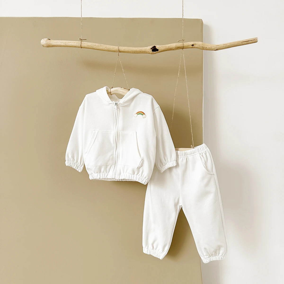 2Pcs Baby Girl Clothes Infant Outfit Rainbow Embroidery Zipper Hoodie Top+Pants Tracksuit Long Sleeve Newborn Sets Kids Clothing