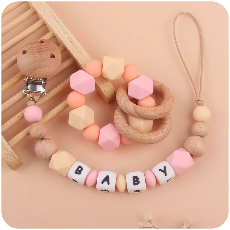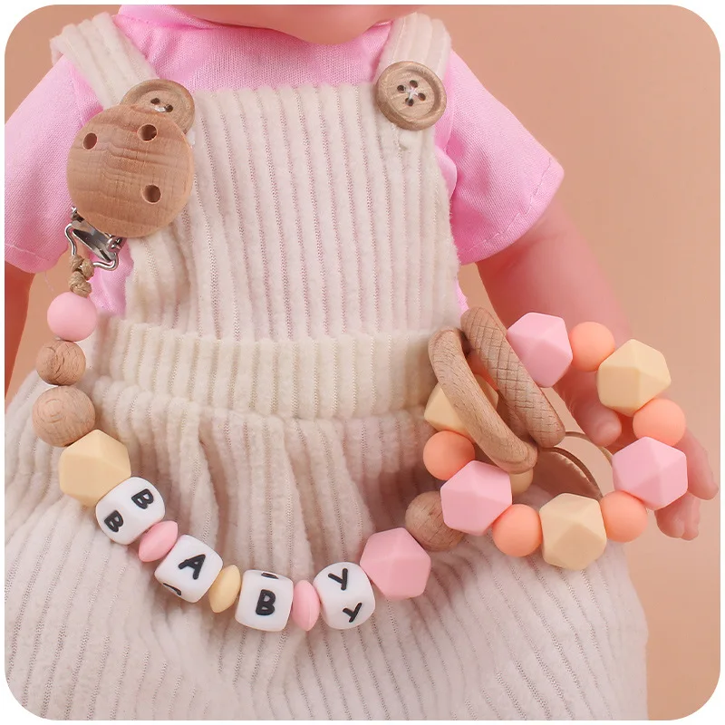 2Pcs Baby Personalized Name Silicone Pacifier Clips Bracket Nipple Bracket Holder Chain for Nipples Toddler Chew Toy Shower Gift