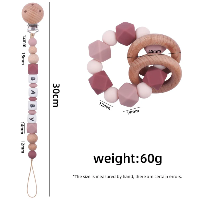 Weight: about 60g (the pacifier chain weighs about 30g, the teether weighs about 30g)