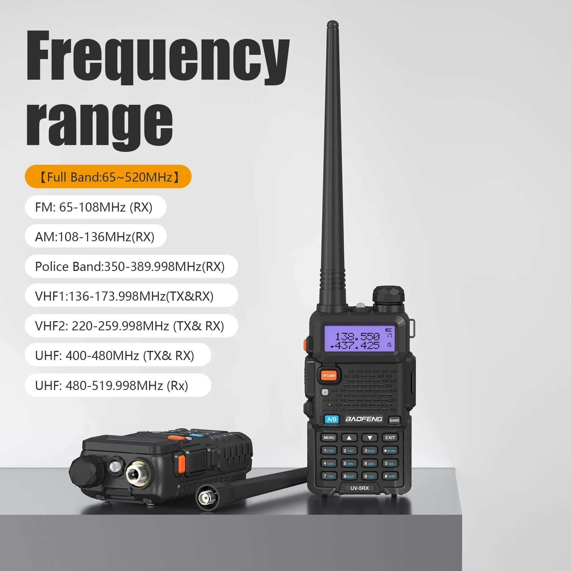VHF1:136-173.998MHz(TX&RX)
