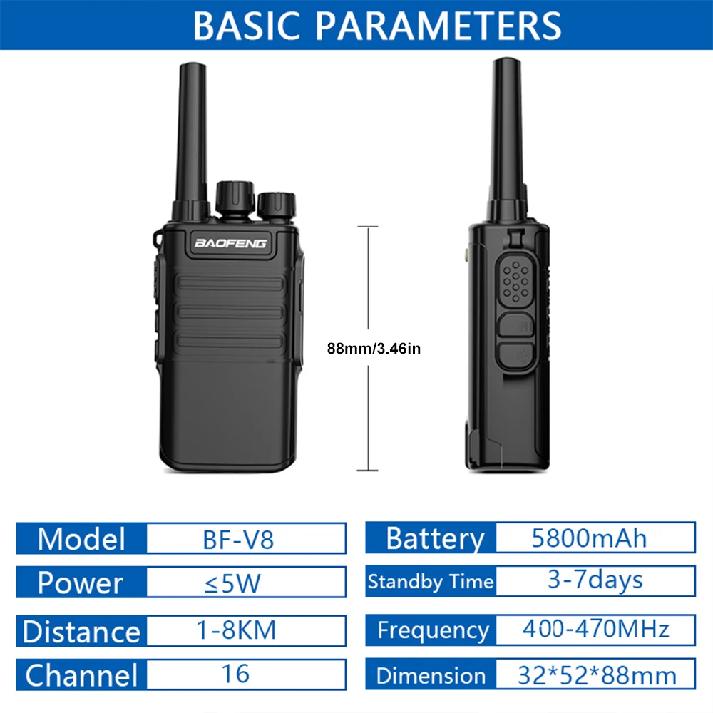 2PCS BF-V8 Walkie Talkie Range USB Charging Handheld Walkie-talkie UHF HF Transceiver Walkie-talkie Kids Birthday Gift Child Toy