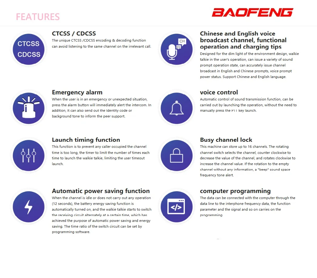 Baofeng BF-888SÂ walkie talkie is compact and portable, widely used for commercial, personal, and recreational purposes. Known for its affordability and ease of use, BF-888S offers basic yet reliable communication features suitable for various applications such as security, construction, entertainment, and outdoor activities.