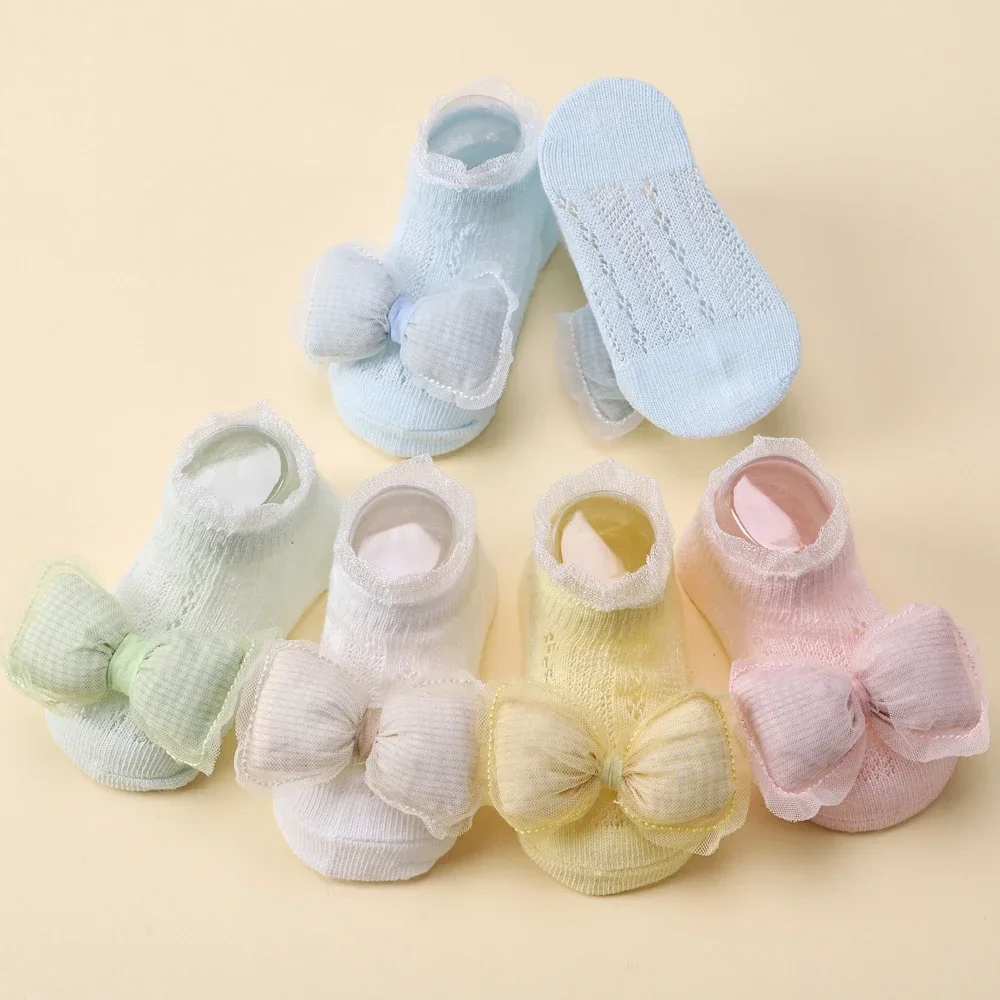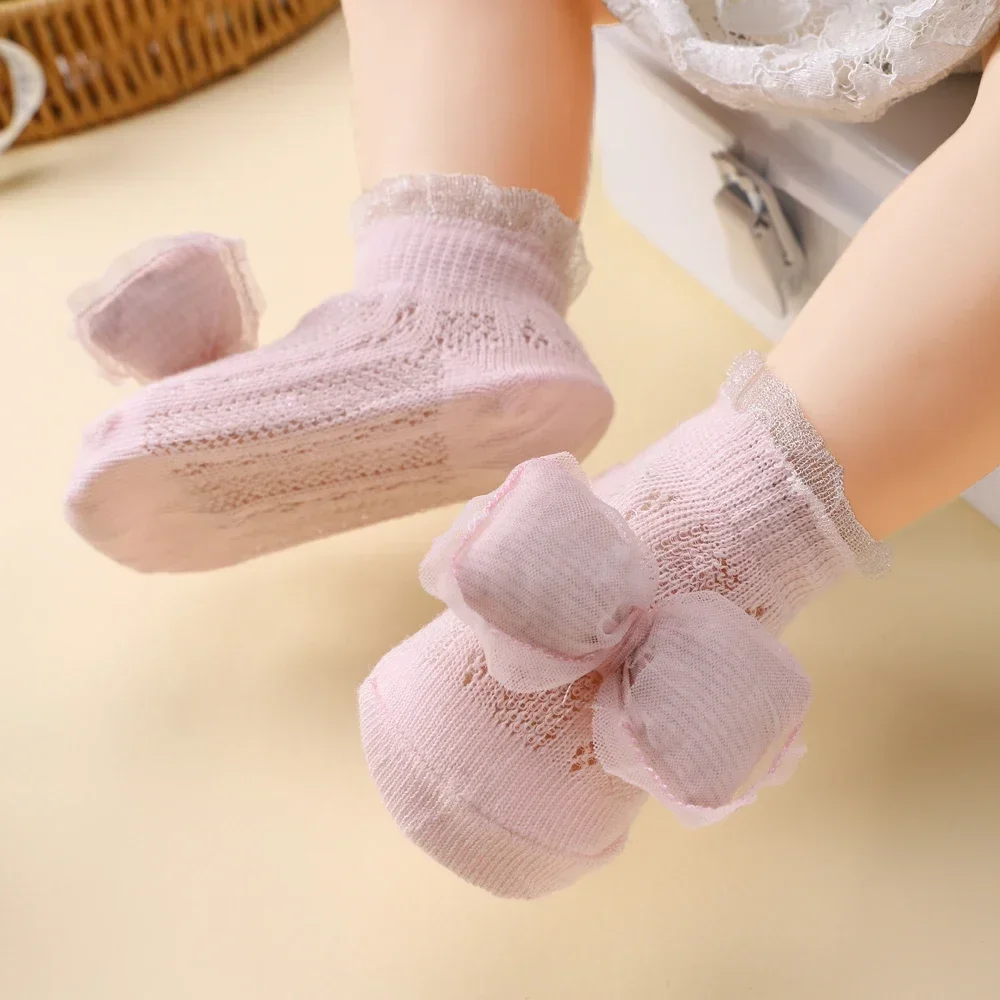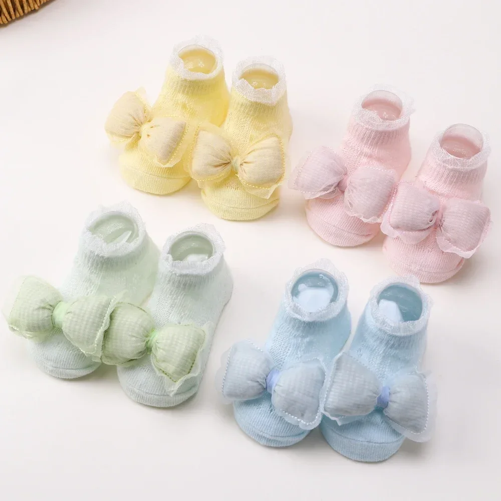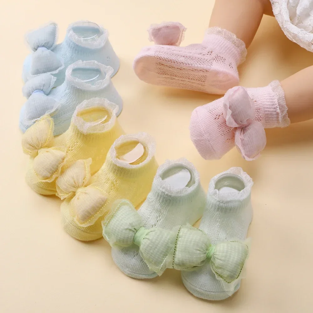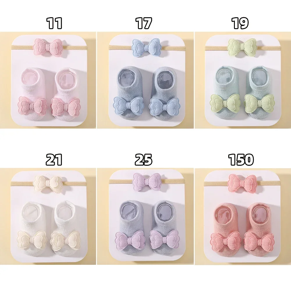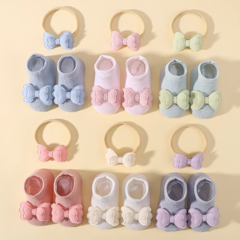 2pcs Fresh Flower Baby Headband Bows Socks Set Candy Color Breathable Short Socks Sweet Infant Elastic Hairband for Newboen