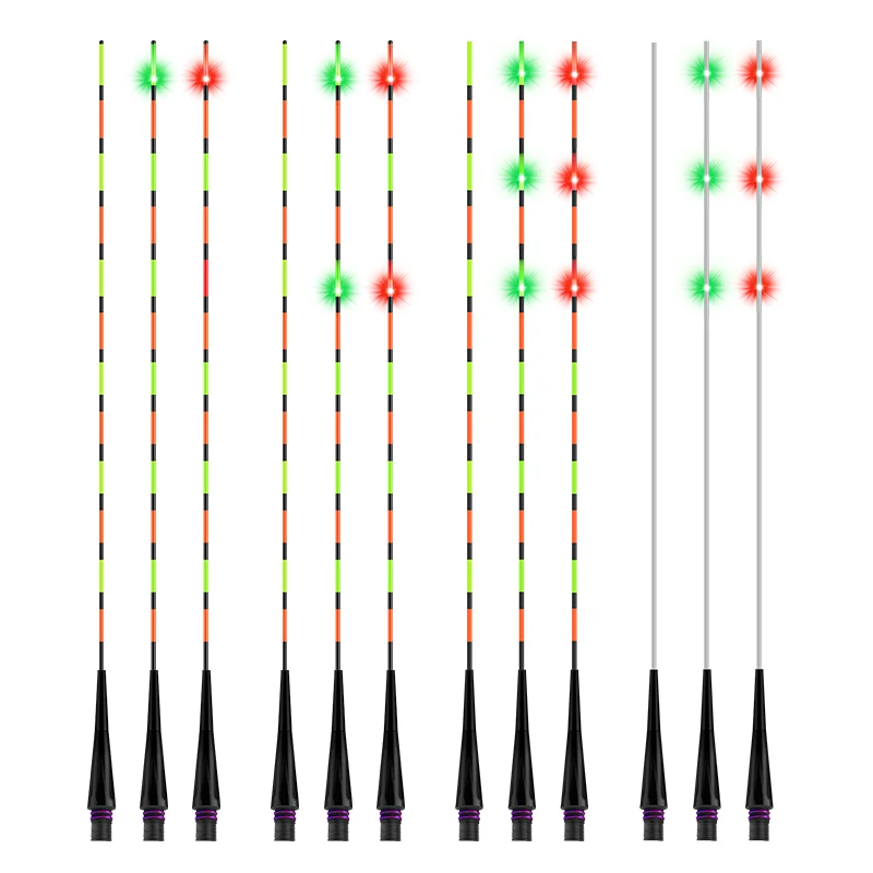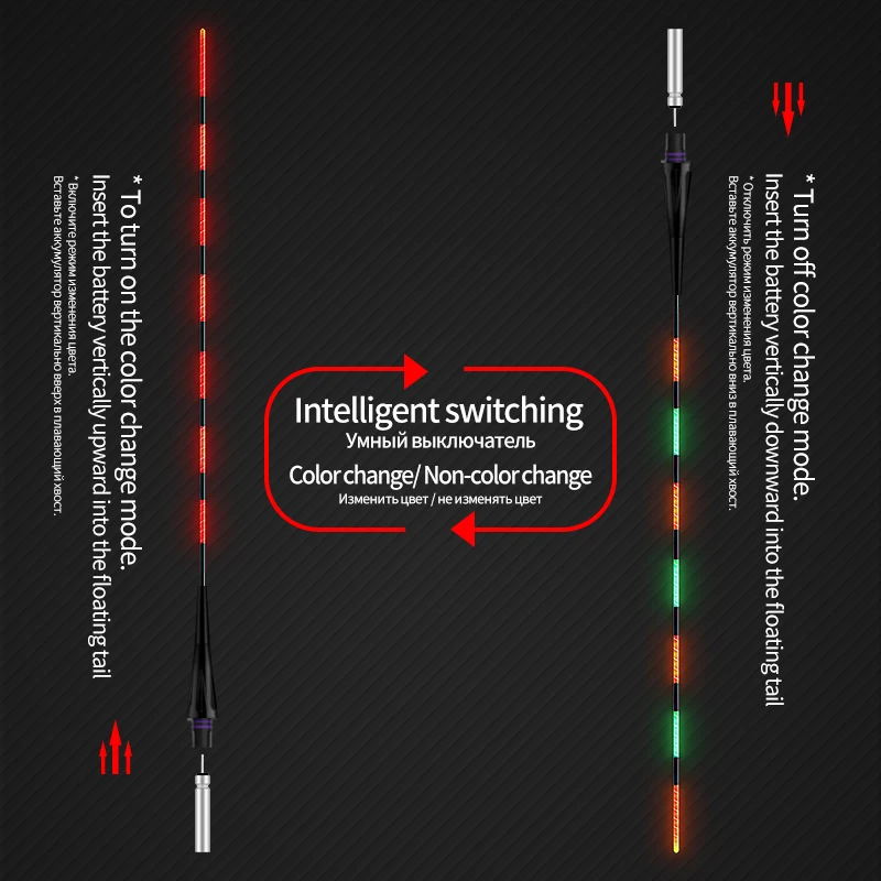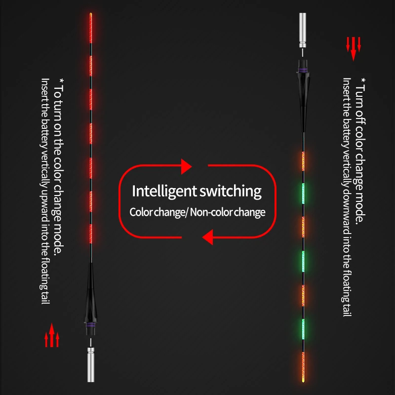 2, The tail is gravity sensor, which can change color from green into red when fish bite hook.