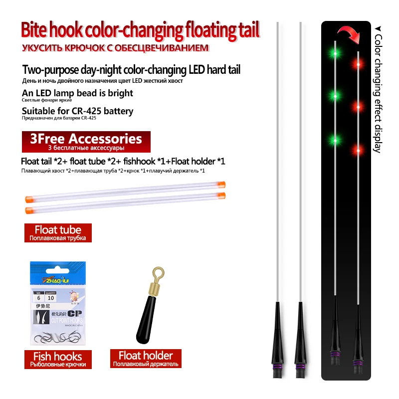 2 pieces LED gravity sensor fishing tails+2 pieces float tubes+1 bag fishing hooks+1 piece float seat