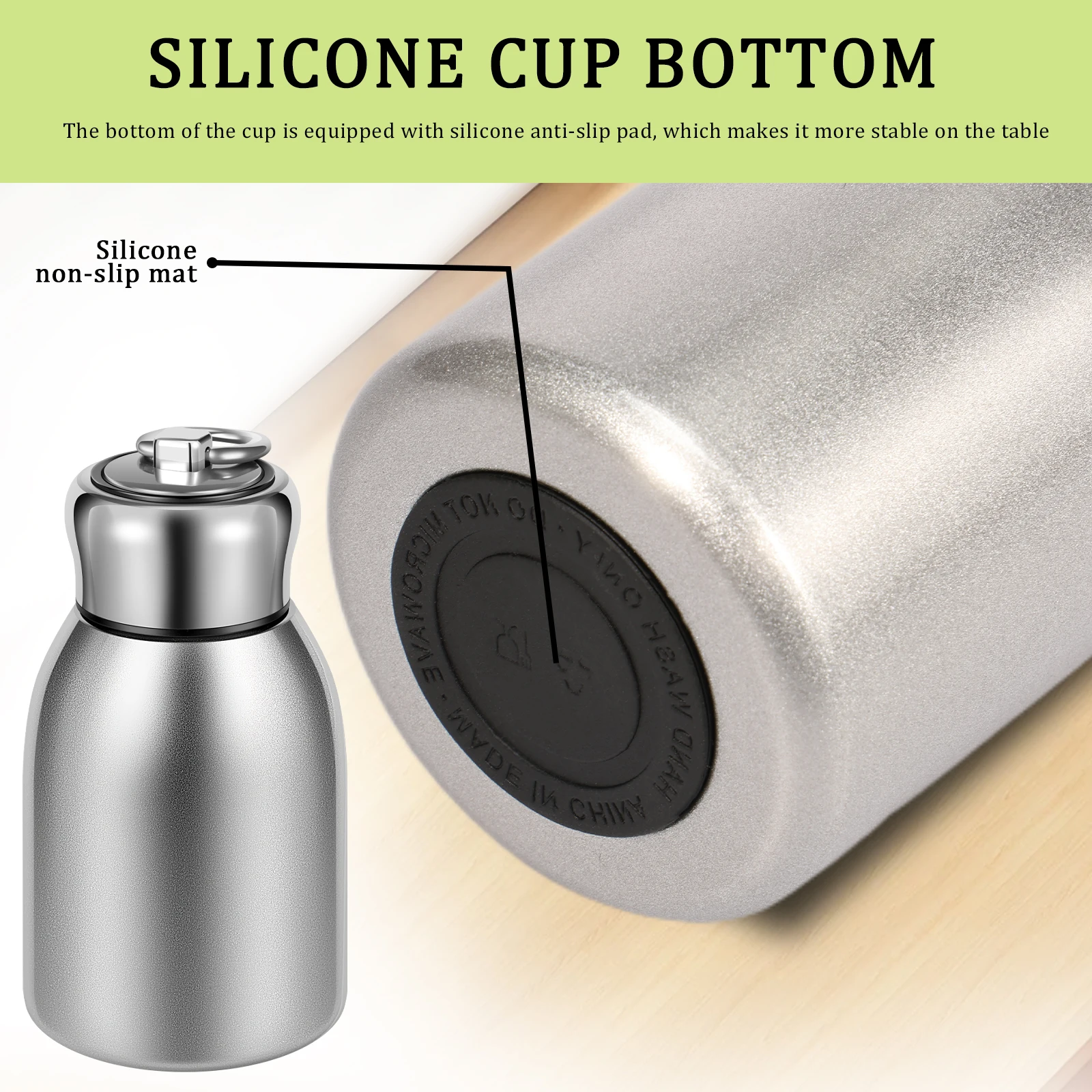 Silicone Nonslip Pad: The bottom of this small water bottle has a silicone nonslip pad, placing it on the table more smoothly, no need to worry about liquid spillage