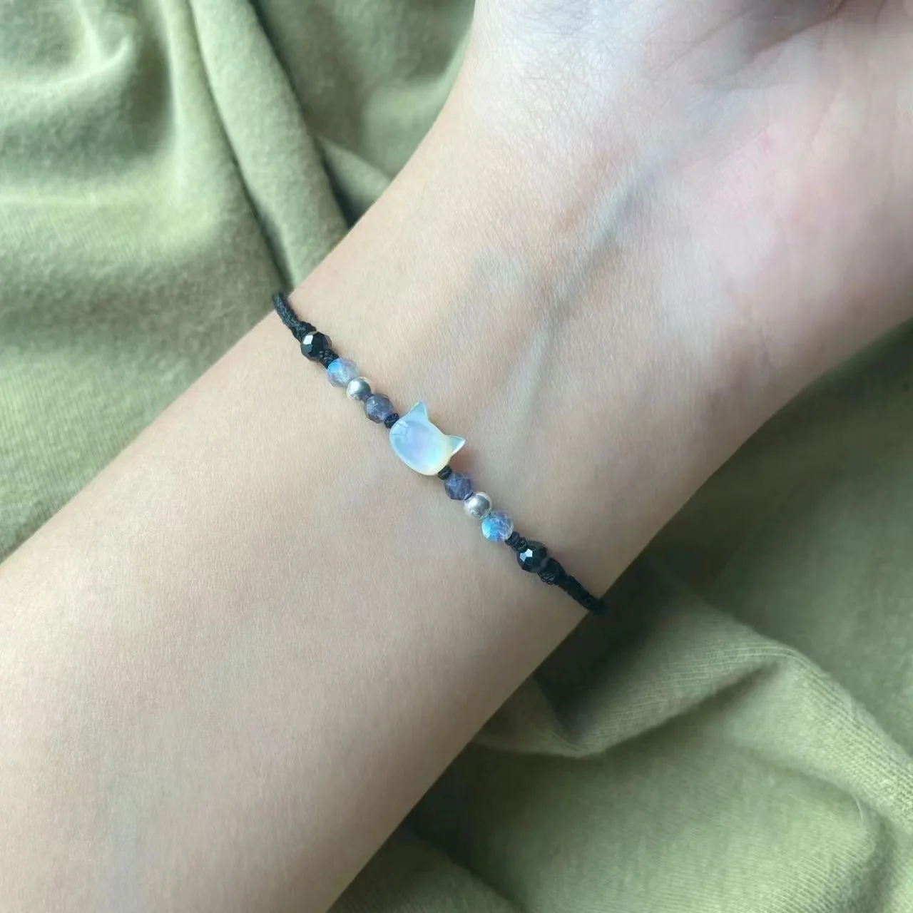 2pcs Natural Moonstone Obsidian Bracelets Couple Minimalist Bracelet Handmade Cute Black White Cat Bracelet Party Jewelry Gifts