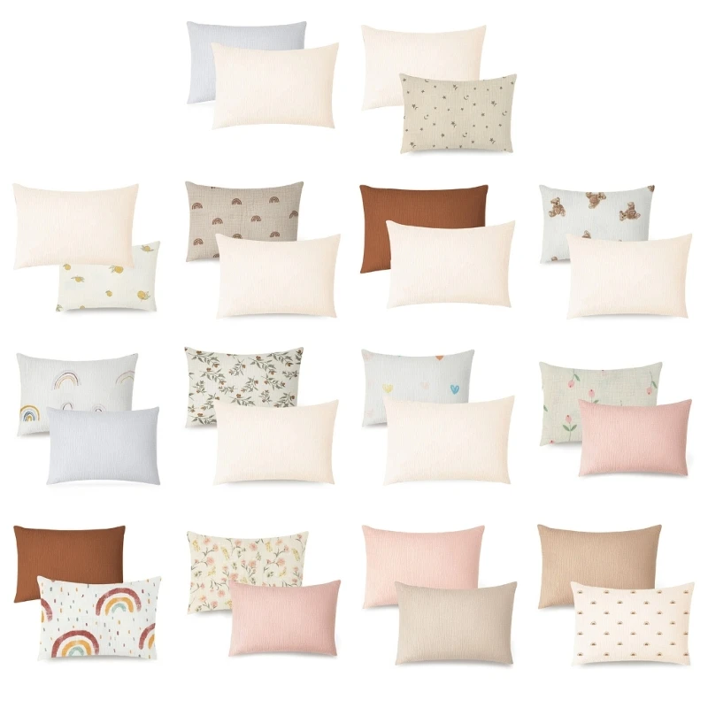 2Pcs Printed/Solid Baby Pillowcase Infants Breathable Pillow Case for Newborns W3JF