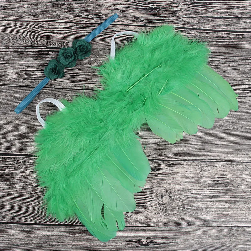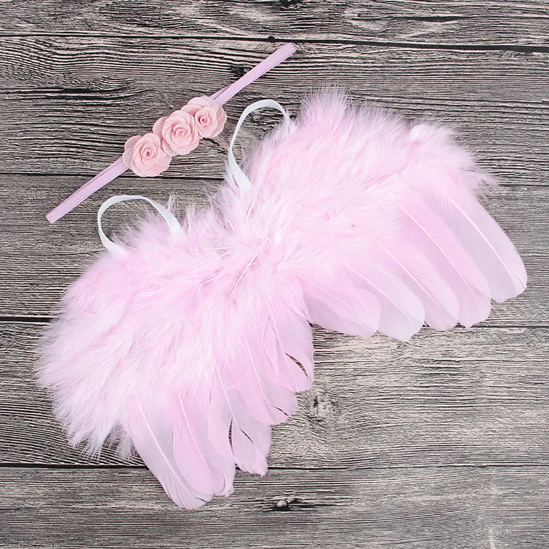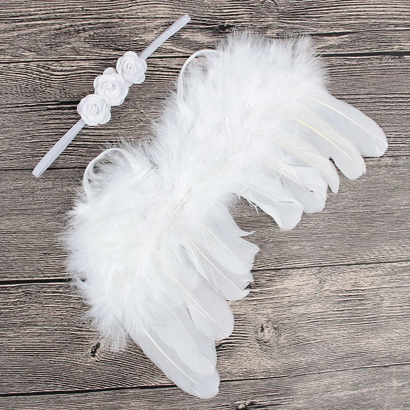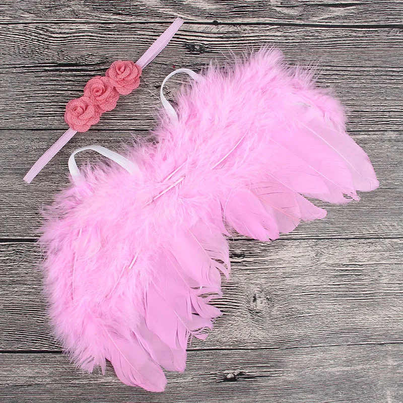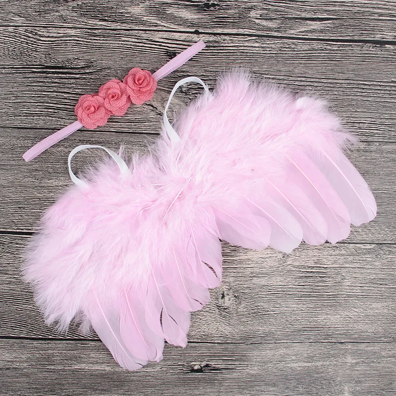 2pcs/set Newborn Angel Feather Wings with Baby Girl Rose Flower Headband Hair Accessories Infant Photography Props Gifts Set