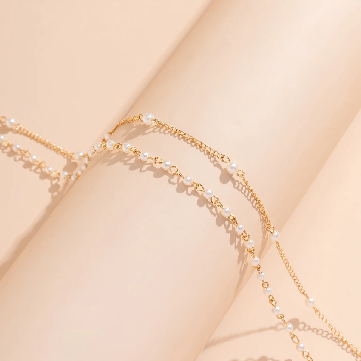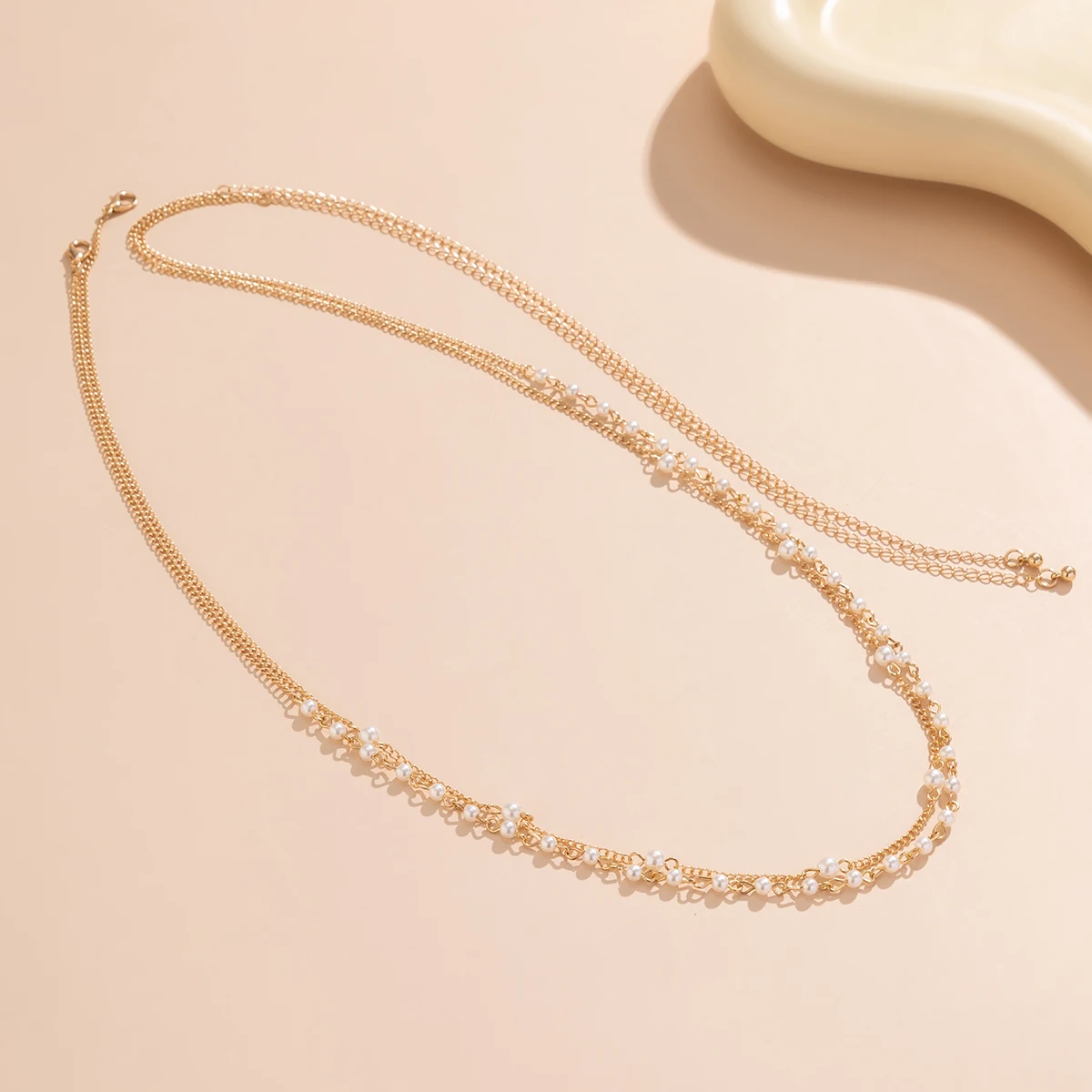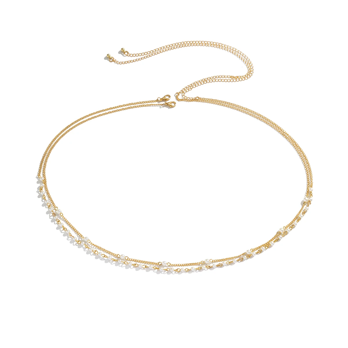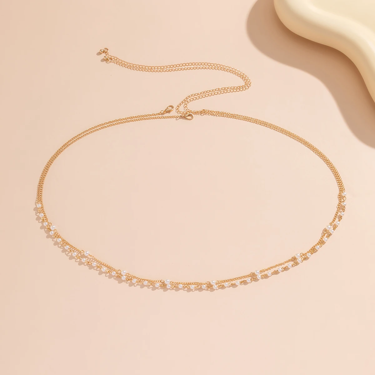 2Pcs/Set Sexy Boho Imitation Pearl Belly Waist Chain for Women Summer Bikini Double Layer Belt Body Jewelry Festival Accessories