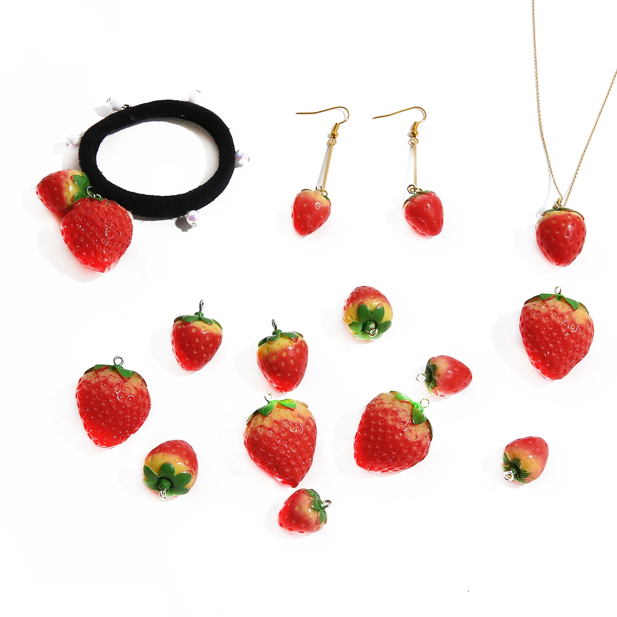 2pcs Strawberry Fruit Resin Miniature Food Art Supply Charm Beads for Jewelry Making DIY Earrings Bracelet Necklace Craft