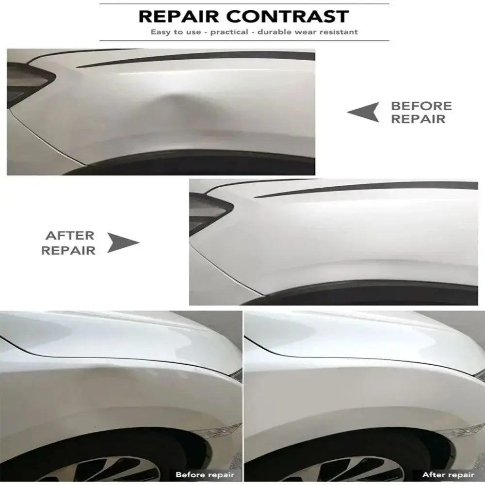Dents can be pulled from almost any vehicle surface,in-cluding metal and plastic.