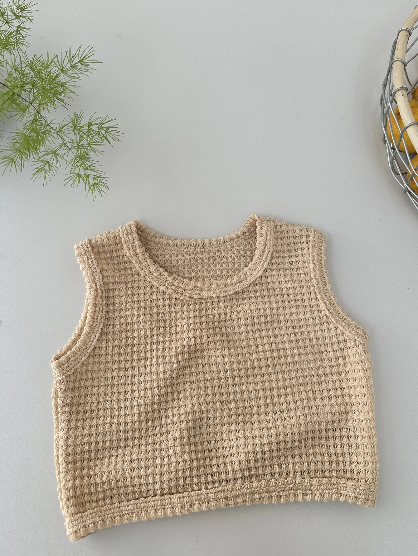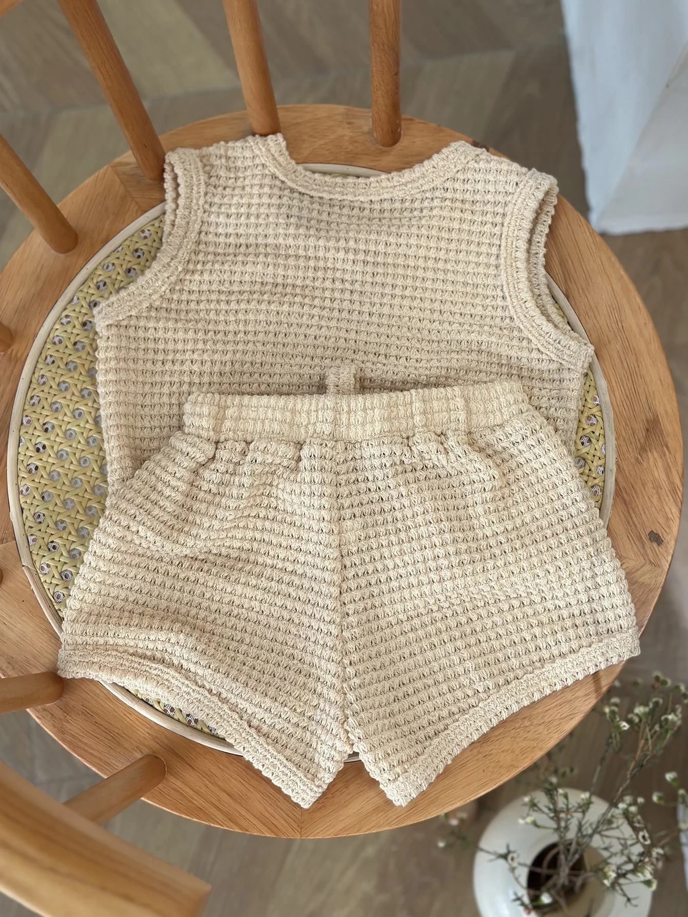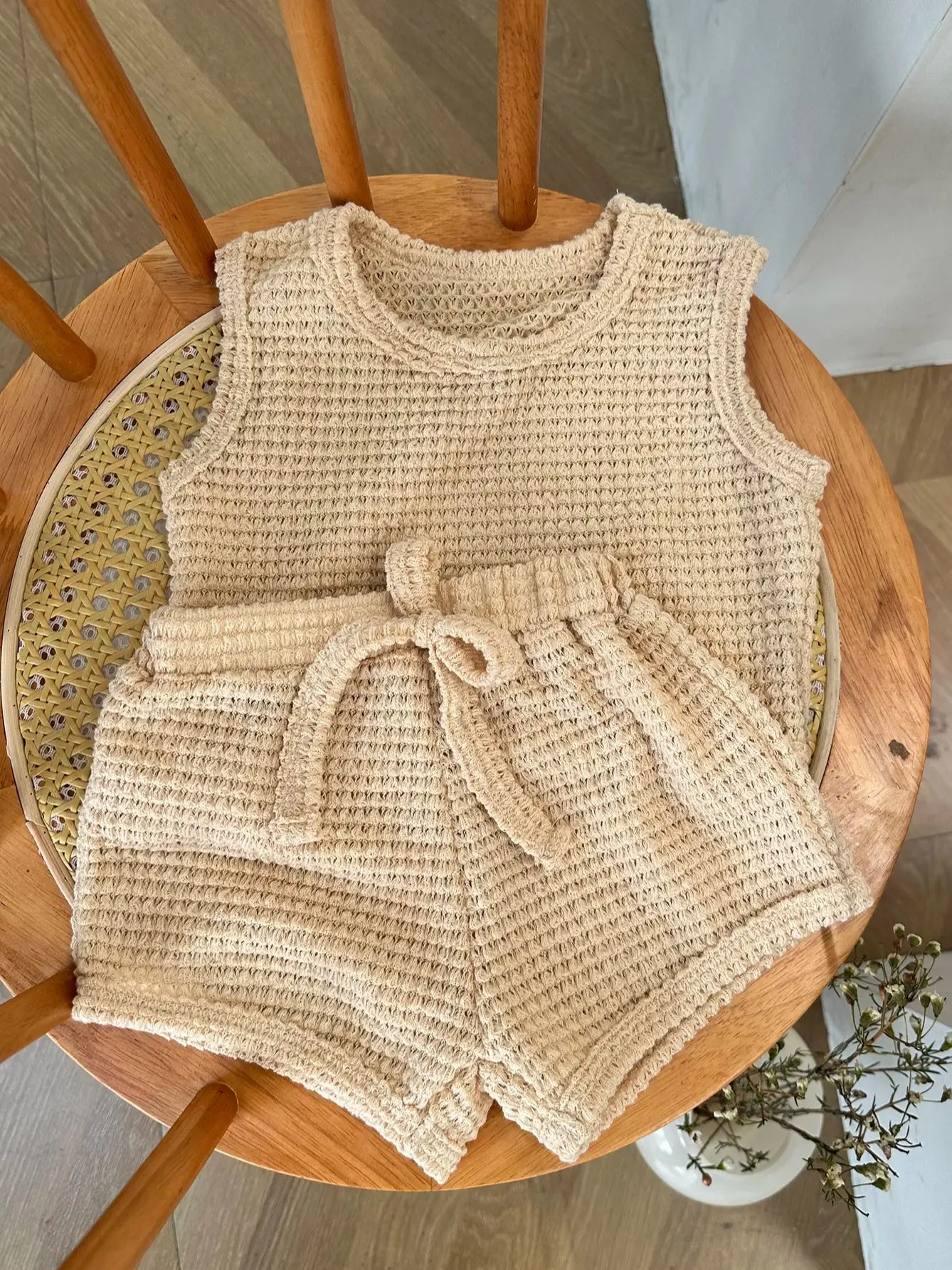 2pcs Summer Baby Waffle Shorts Set Toddler Girls Boys Sleeveless Top And Shorts Outfits Knitted Kids Simple Style Clothing Set