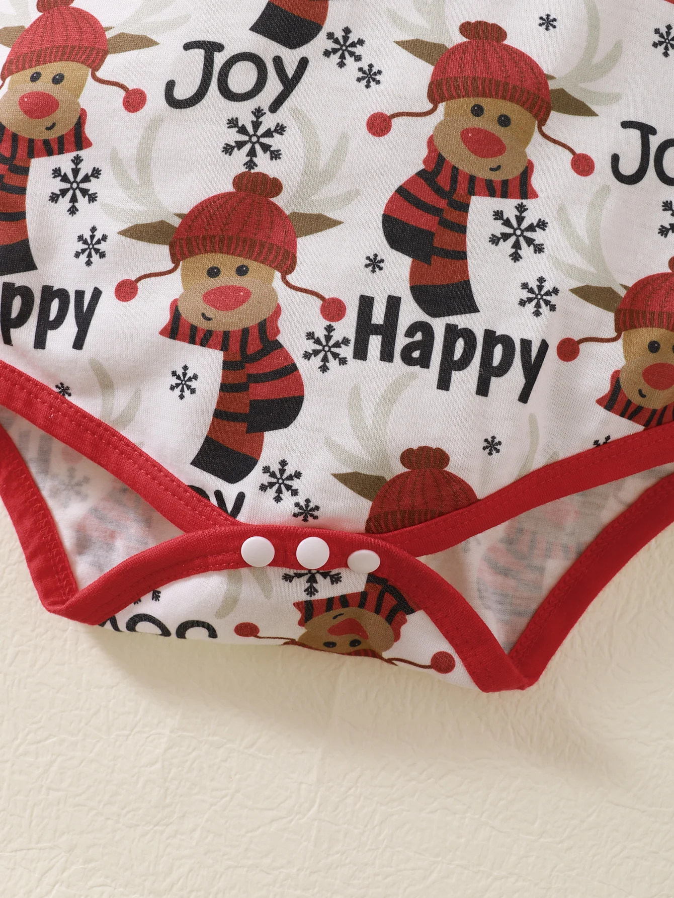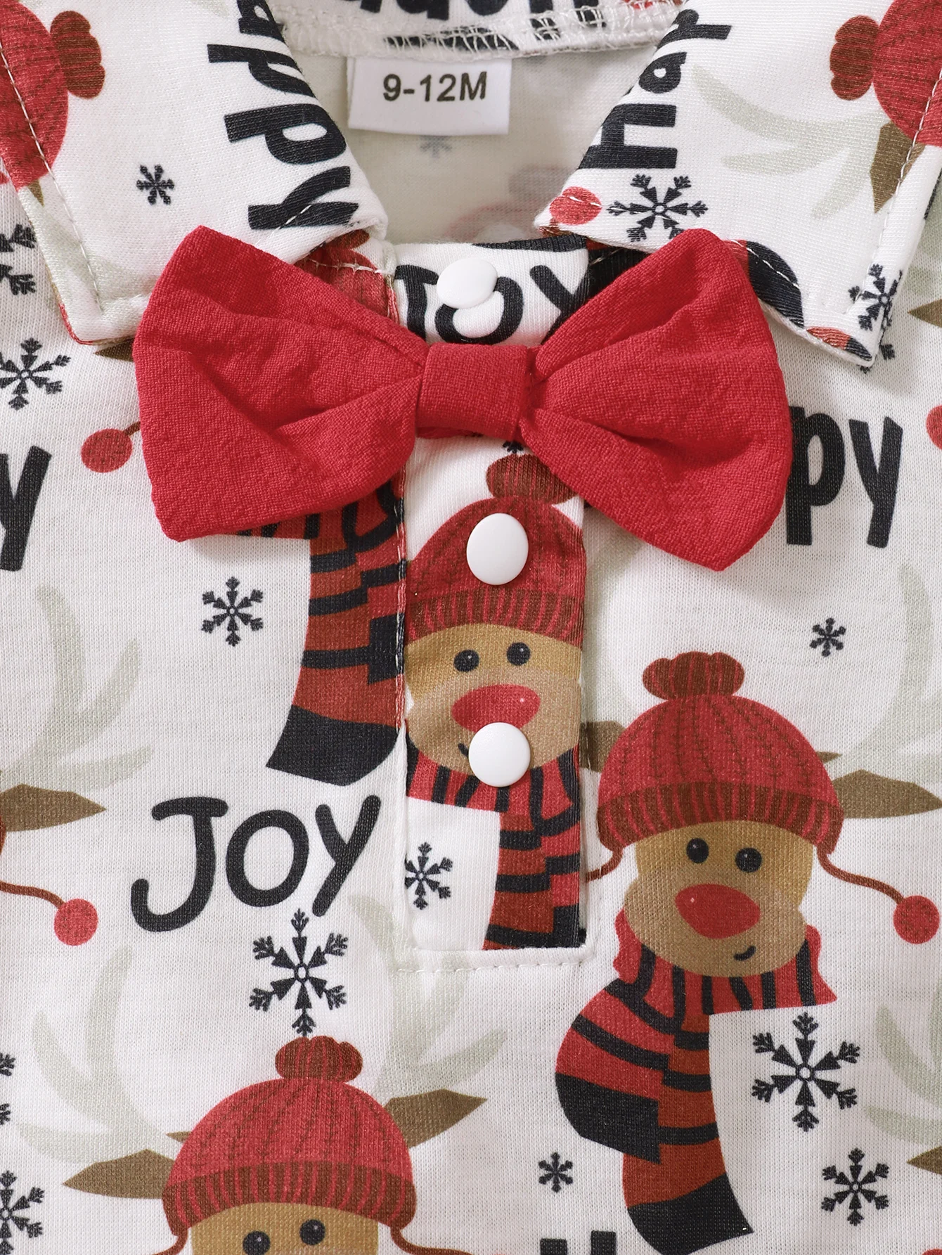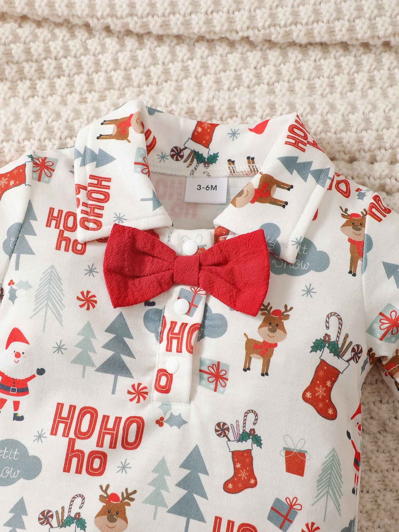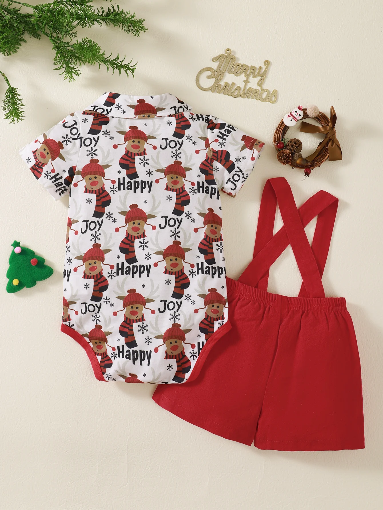 2pcsChildren’s clothing Santa Claus Printed Short sleeved Bodysuit+Suspender Pants 0-12 Months Male baby Christmas Gentleman Set