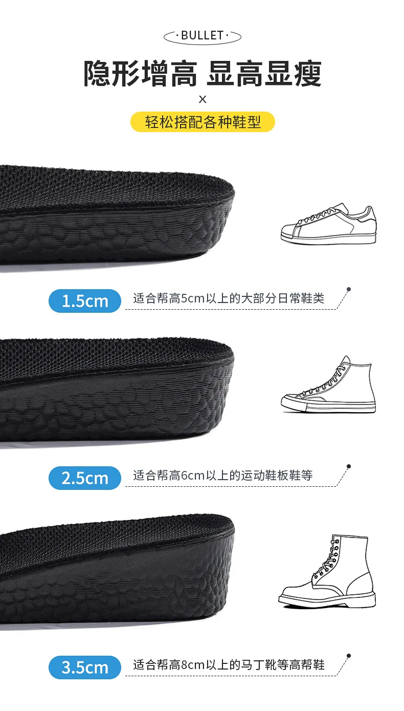 3.5cm2.5cm Invisible Heightening Insoles Unisex Heighten Insert Cushion Pads EVA Lifting Insole Heel Arch Support Taller Cushion