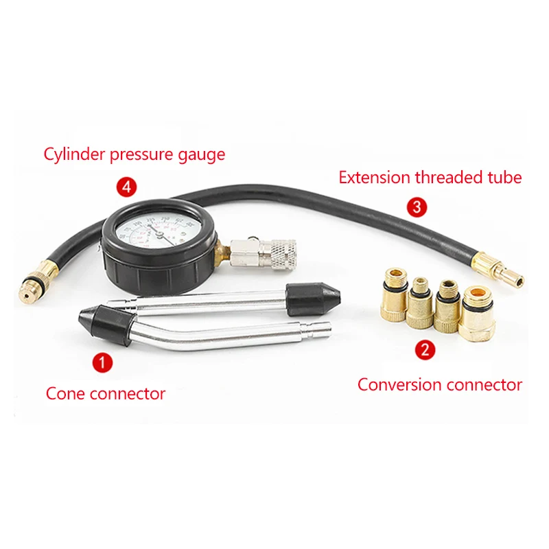 This compression tester can be quickly set to your bike / car, then you can get accurate readings on the valve, piston ring, cylinder bore or head gasket.