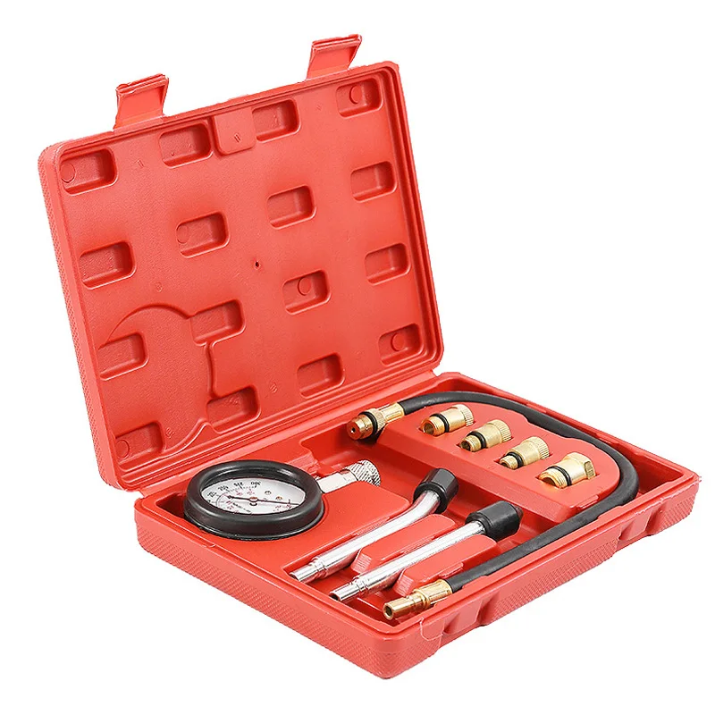 3/8pcs Car Auto Pressure Gauge Tester Kits Set Auto Petrol Engine Compression Leakage Diagnostic Compressometer Tools With Case