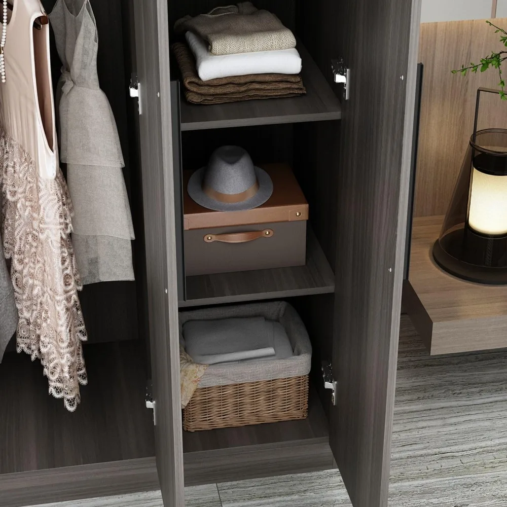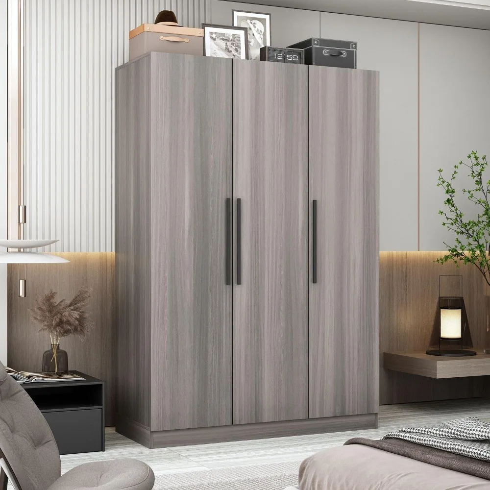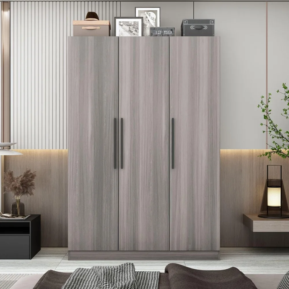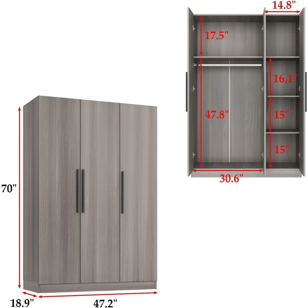 3 Door Wardrobe Armoire Closet with Shelves, Armoire Wardrobe Closet with Hanging Rod, Armoire Closet with Wooden Handles