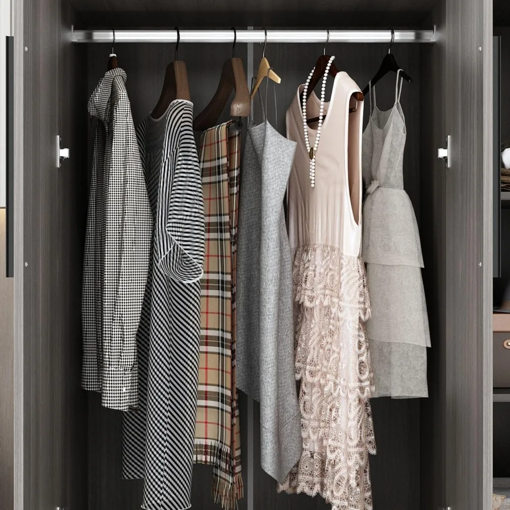 - Plenty of Storage – The clothing area is for hanging your suits, uniforms and coats. Features 4-tier shelves and 1 larger shelf, making it possible to store bedding or household stuff.