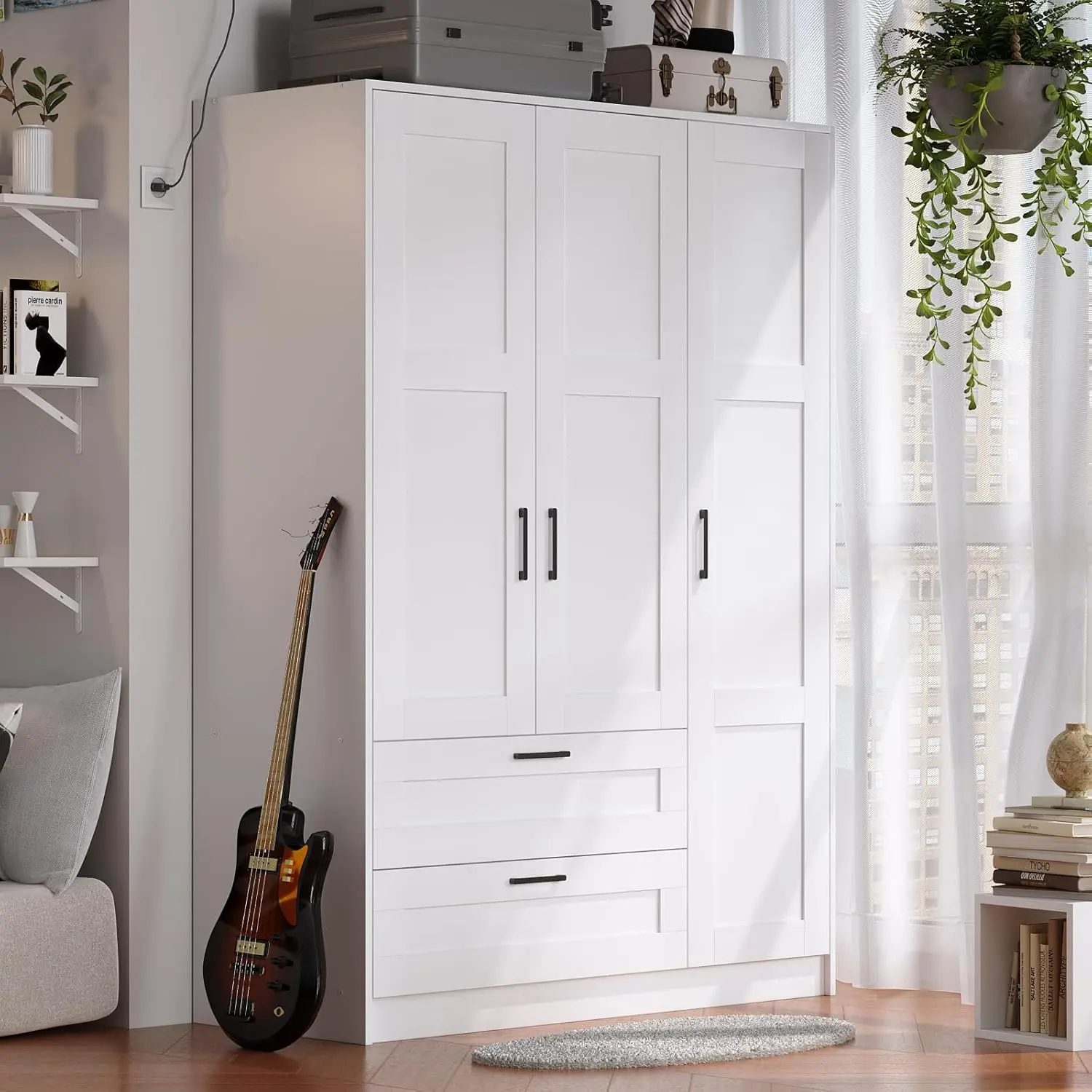 - â–¶ Quality is very good: the surface of the wardrobe board uses unpainted stickers, smooth and delicate, easy to clean and maintain. The inner plate of the wardrobe is thick, the cabinet structure is strong and durable, and has certain flame retardant and good wear resistance.