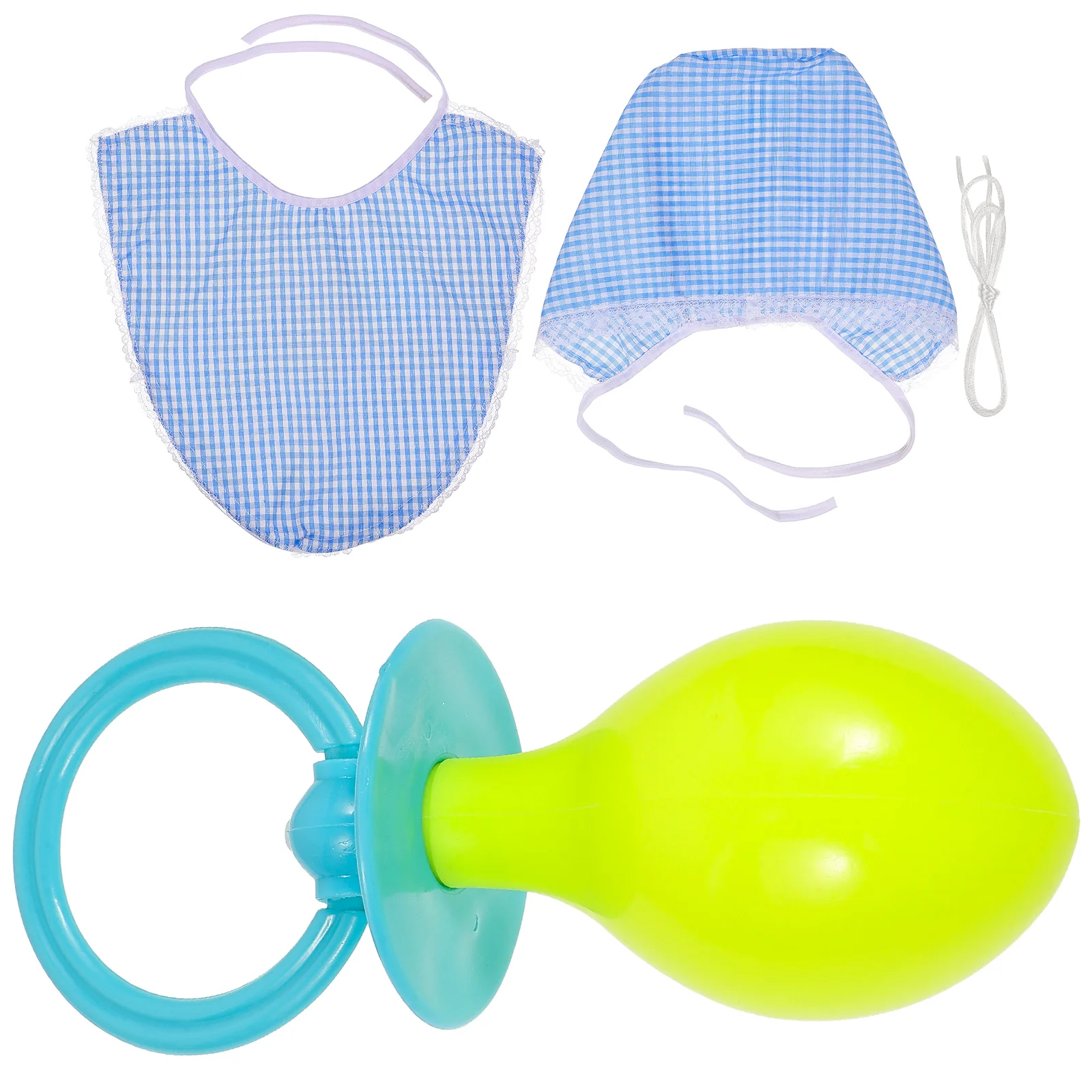 3 Pcs Funny Adults Cosplay Baby Pacifier Bib Hat Set Party Funny Props Baby Kids Accessories Kit (Pink)