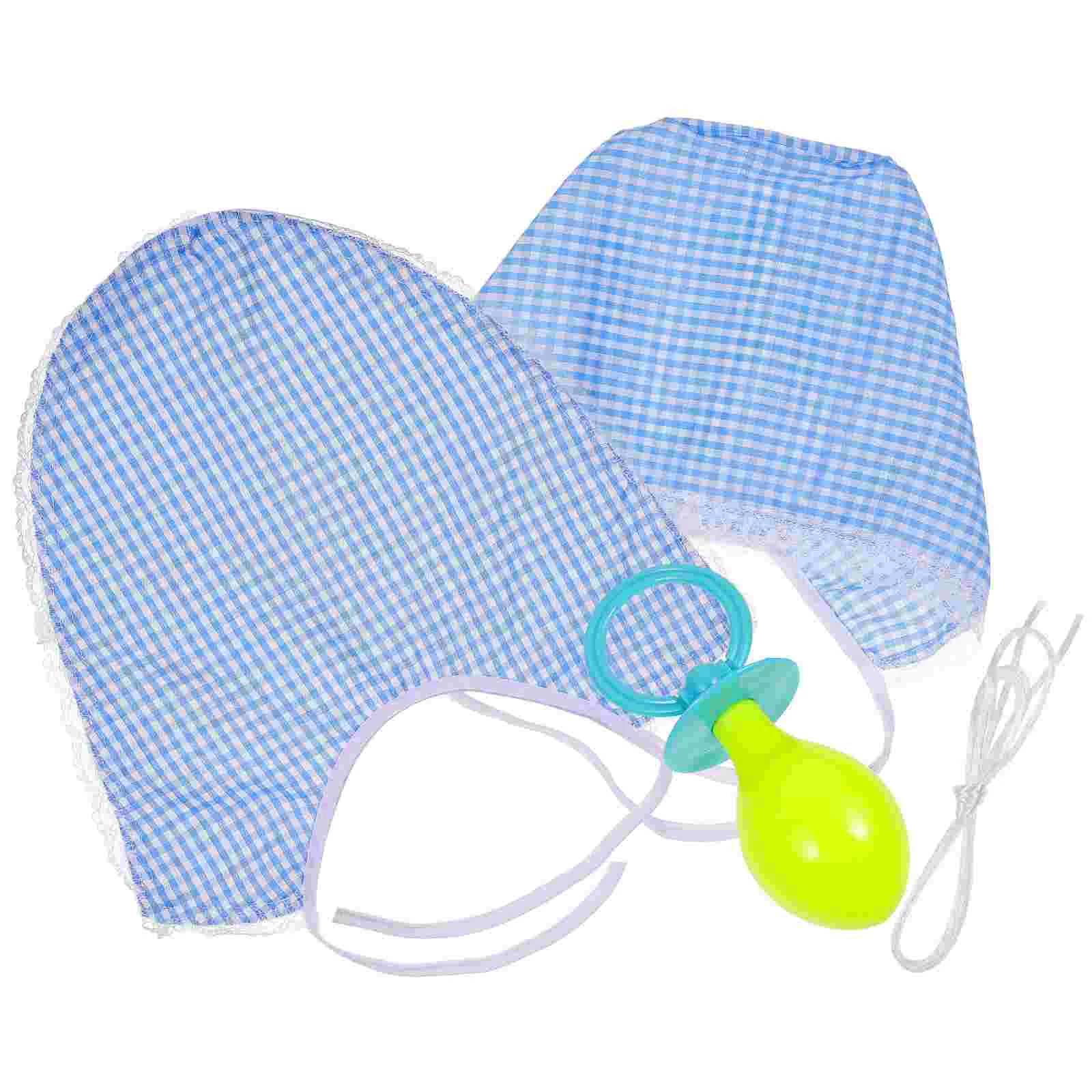 This is a set of 3 baby pacifier bib hat, fine material, excellent workmanship, fashion and chic. This adults cosplay use, when adult man or woman wear this set, he/she just like a giant baby, very funny, a nice party props set. You little babies can wear this set also, it will make them and beauty.