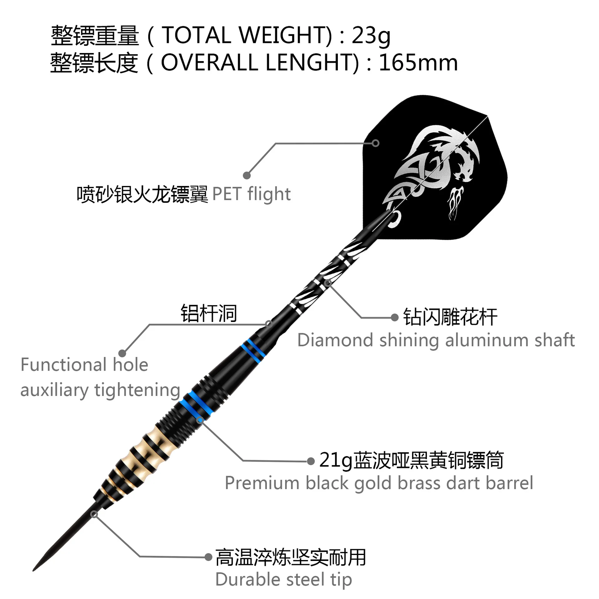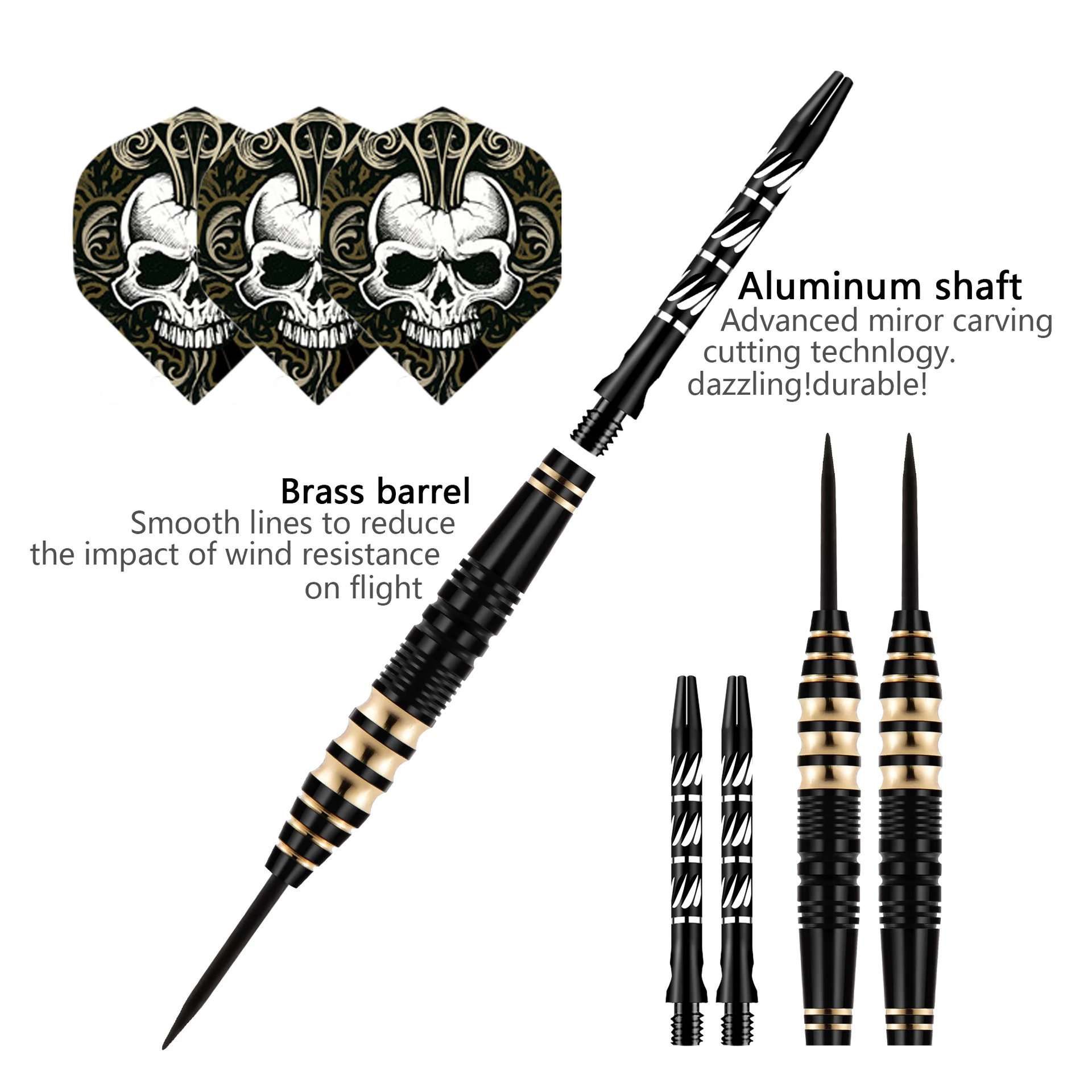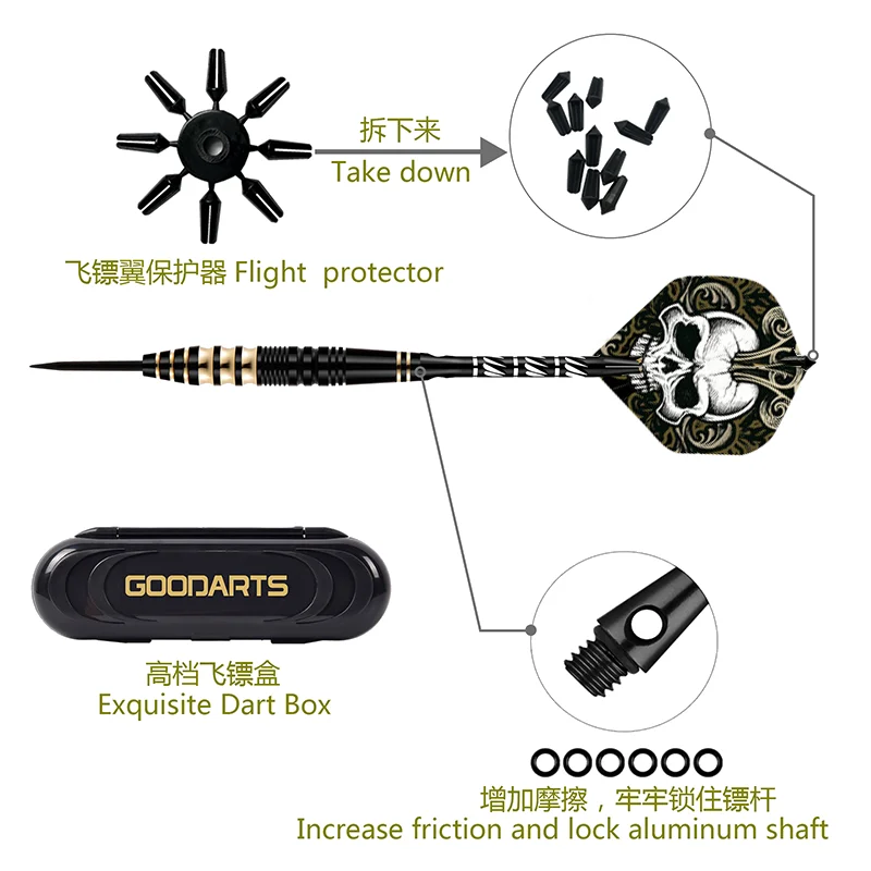3 PCS Professional Brass Darts with Free Case 23g Steel Tip Darts Iron Copper Barrel for Indoor Game Sports