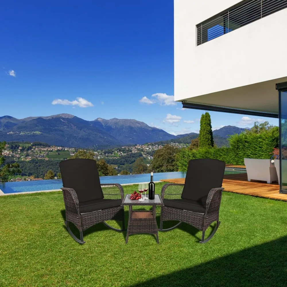 3 Pcs Rocking Bistro Set Conversation Chairs PE Wicker Outdoor Rocking Chairs Garden Furniture Sets Outdoor Furniture