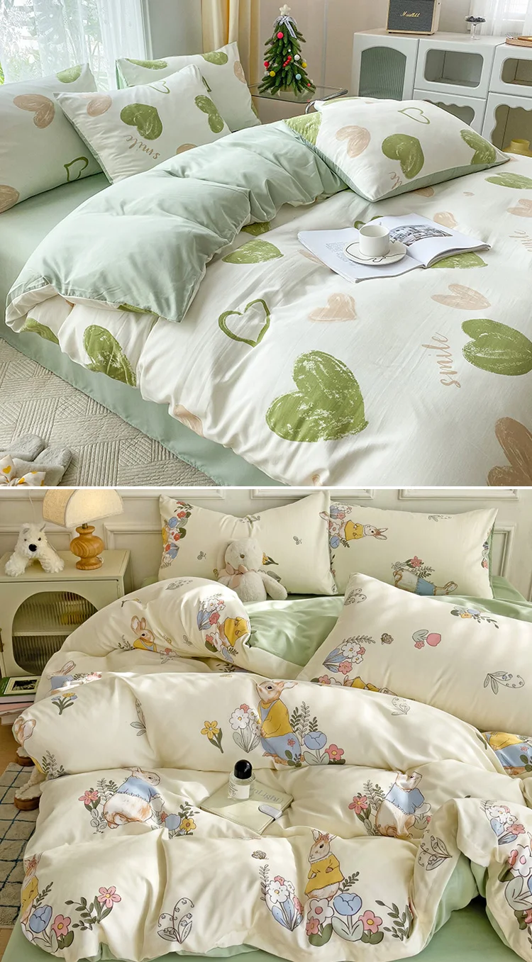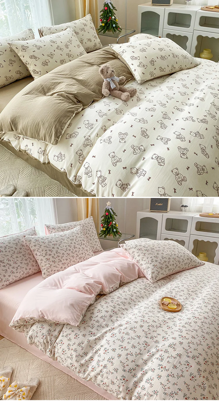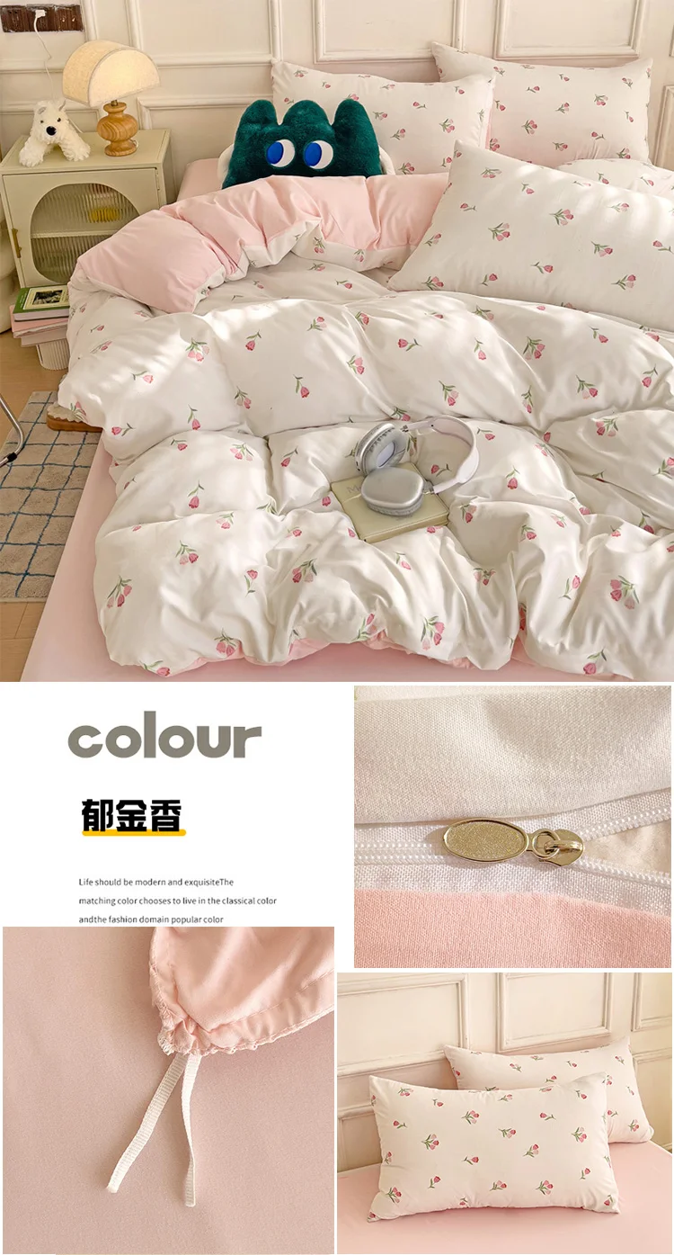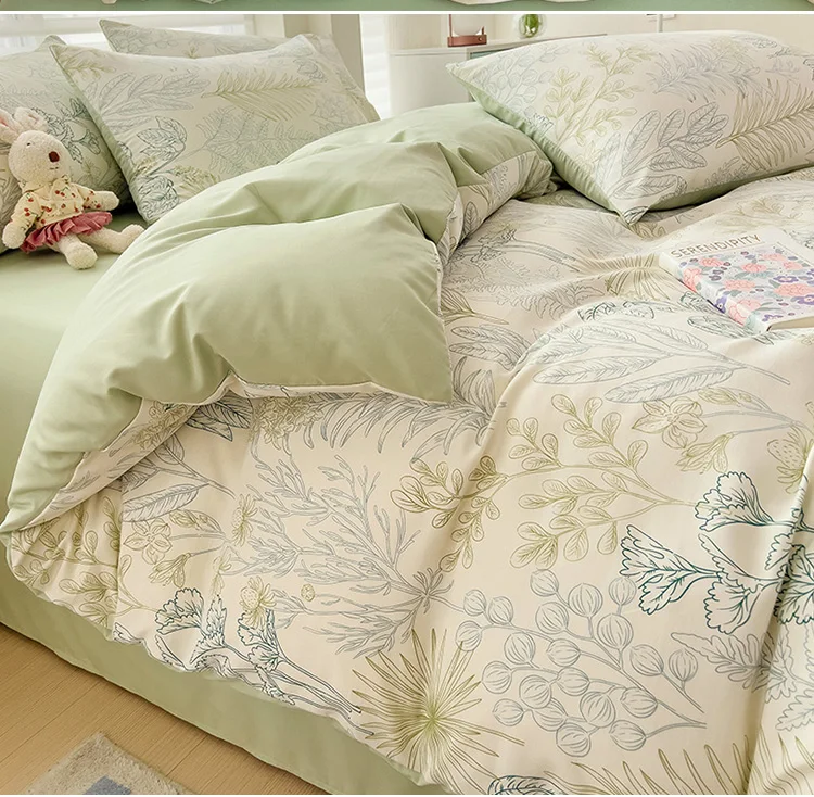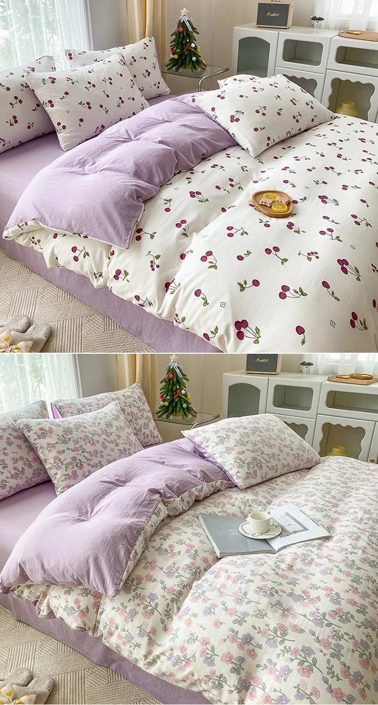 3-Piece Cartoon Heart-Shaped Plant Floral Print set, A Duvet Cover And A Pair Of Pillowcases (No Padding), Suitable For Bedroom