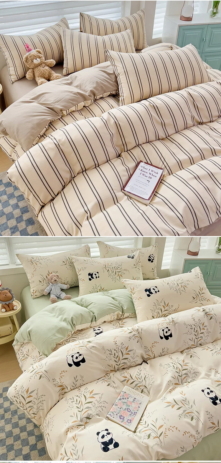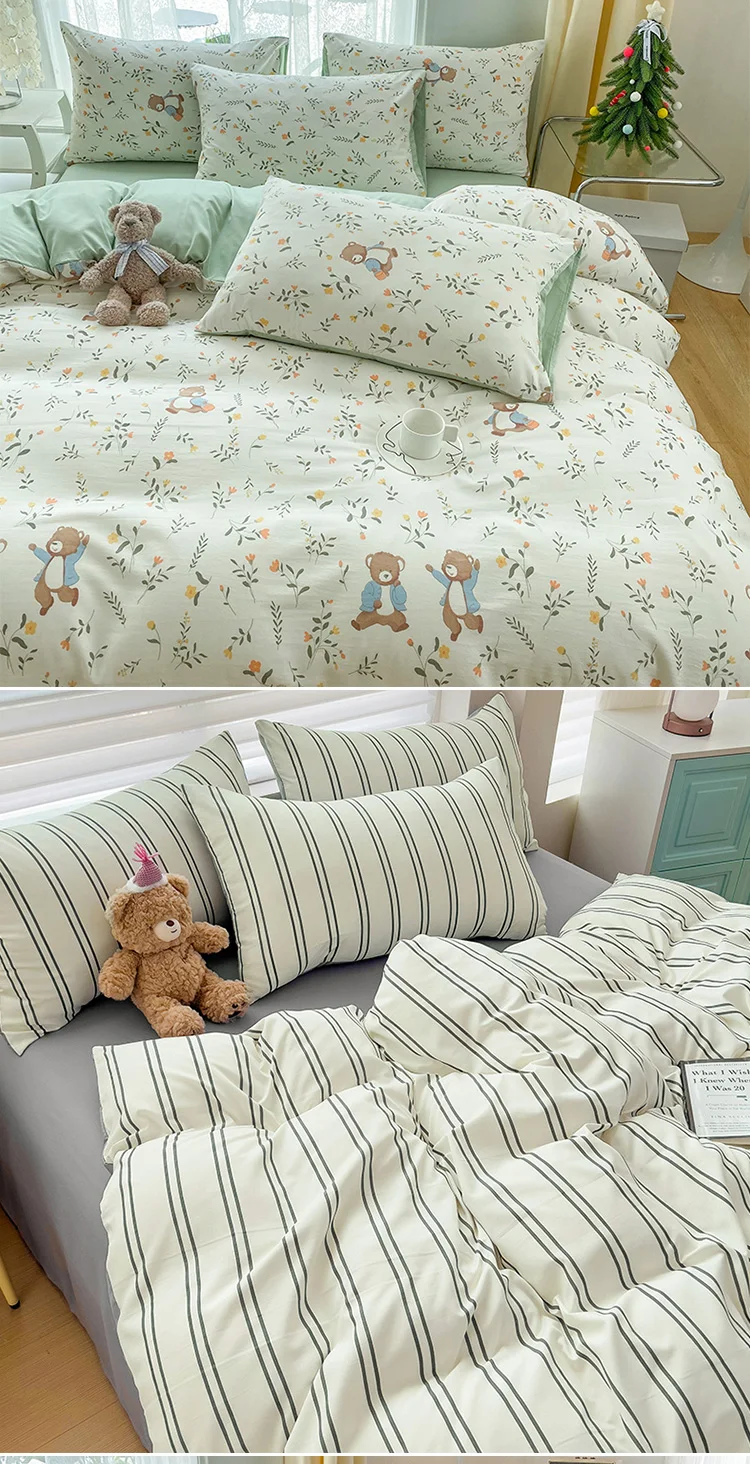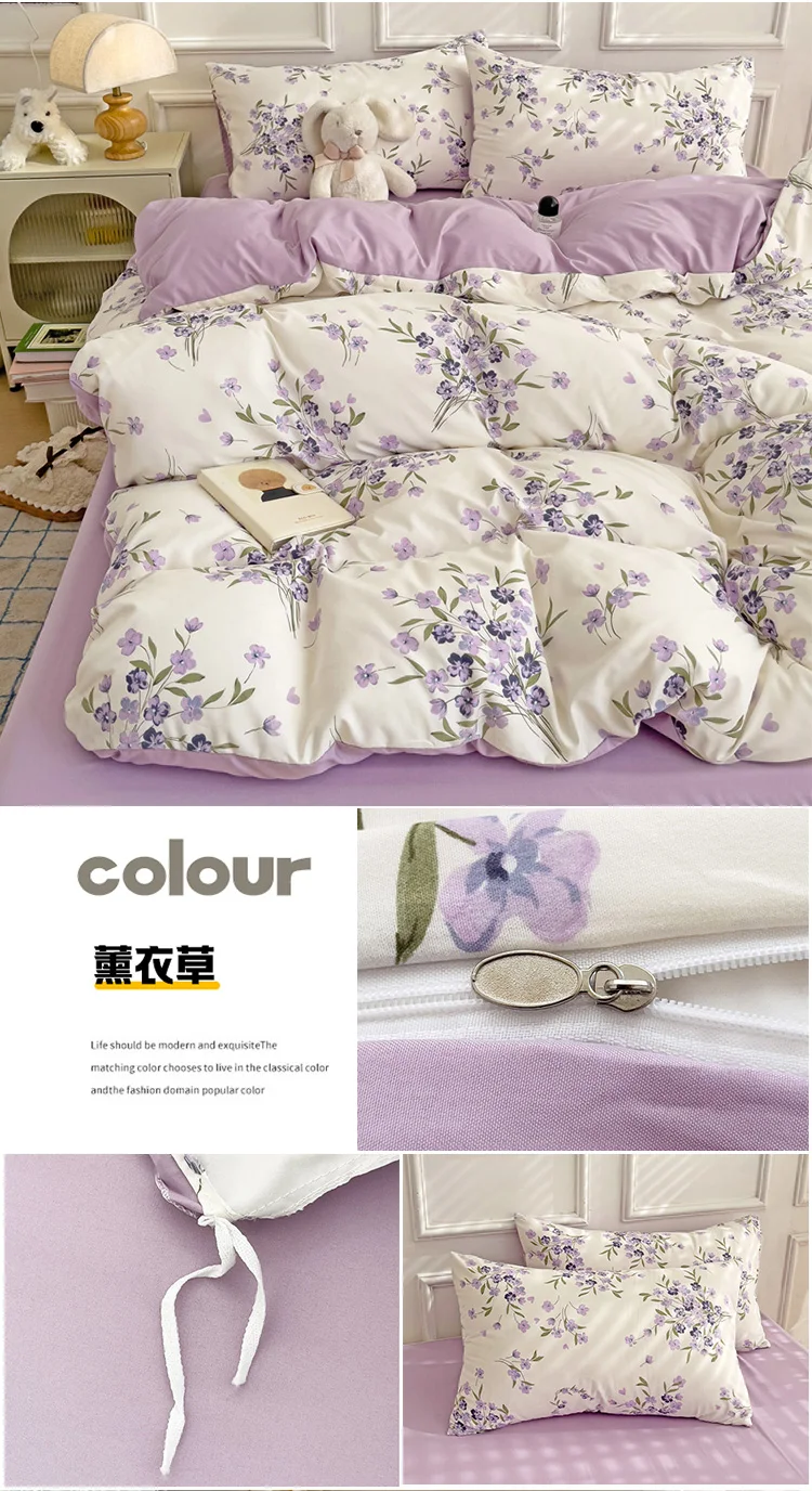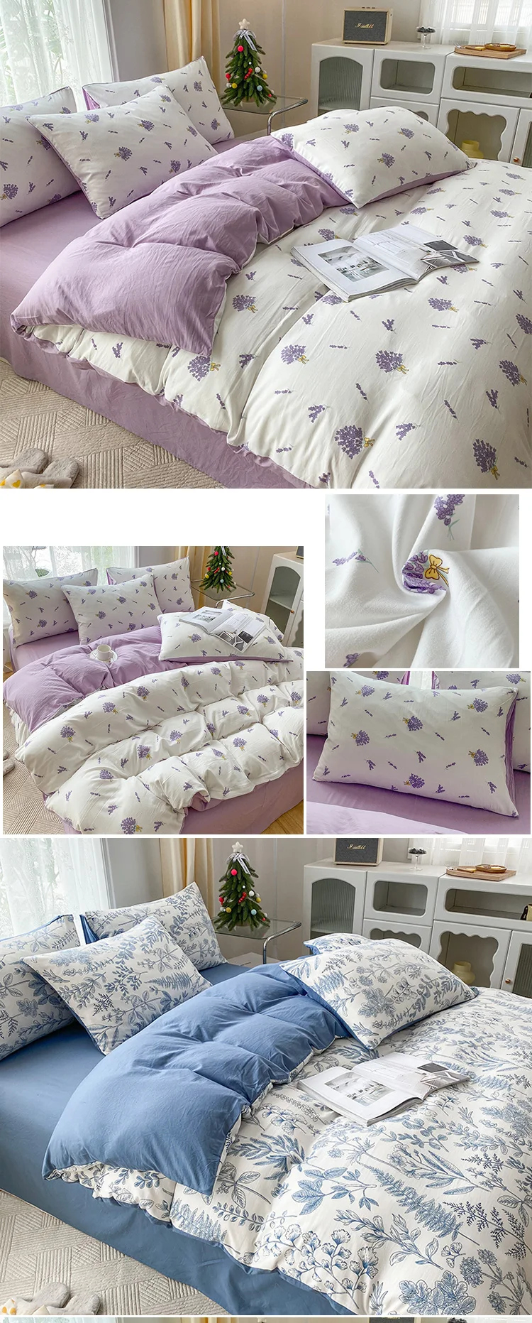 3-Piece Cartoon Heart-Shaped Plant Floral Print set, A Duvet Cover And A Pair Of Pillowcases (No Padding), Suitable For Bedroom