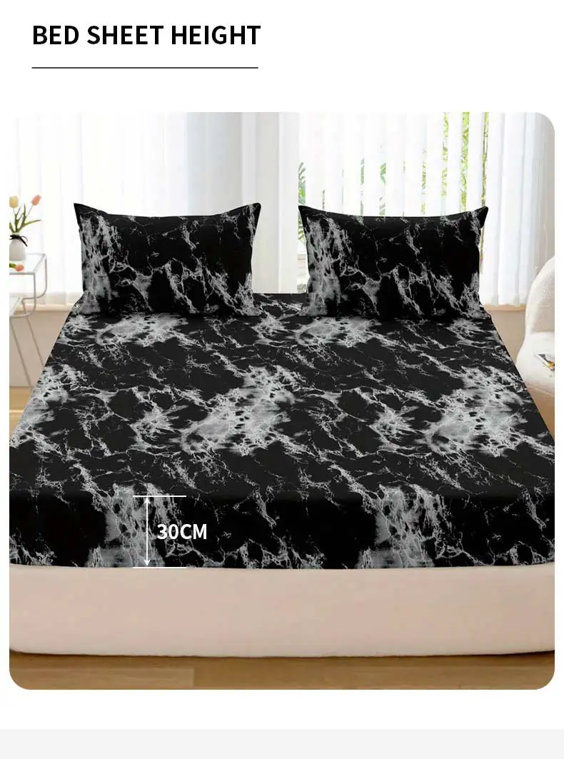 3-Piece Marble Print Fitted Sheet Set – Ultra Soft, Breathable Microfiber Fabric, Hypoallergenic, Wrinkle-Resistant, Easy Care – Elegant Home Decor for Bedroom with 1 Fitted Sheet and 2 Pillowcases Without Core