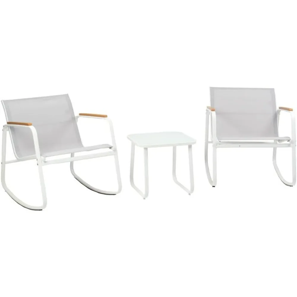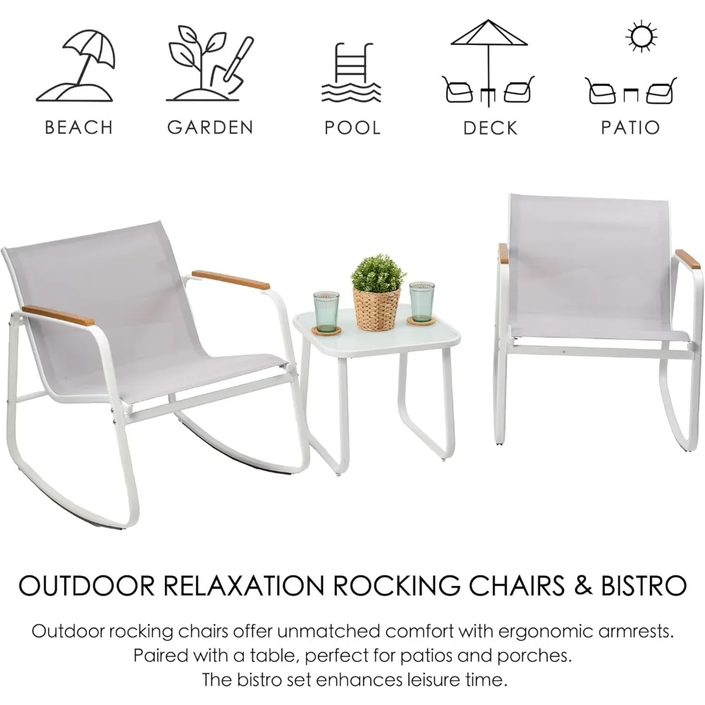 • ✅ Gentle Rocking Design: The 3 piece patio furniture set features a sturdy rocking base with non-slip rubber mats and adjustable stoppers, ensuring each chair rocks gently and maintains balance. The ergonomically designed curved seat offers a cozy and relaxing experience, perfect for unwinding after a long day.