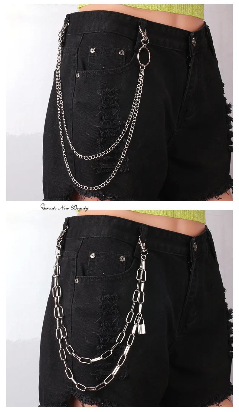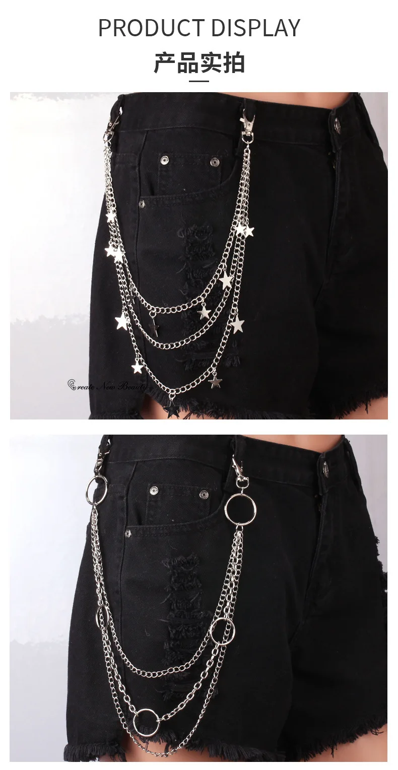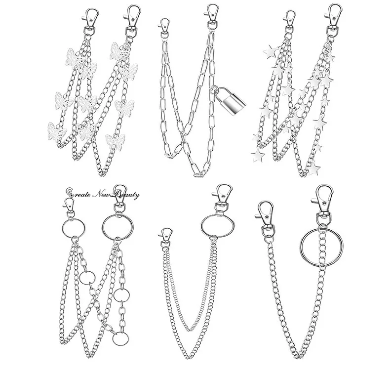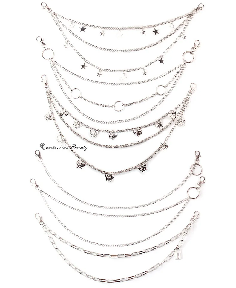 3-piece Set Punk Rock Layered Chain Keychains for Men Women Waist Key Wallet Jeans Hip-hop Pants Belt Chains Jewelry Accessories