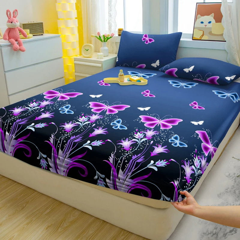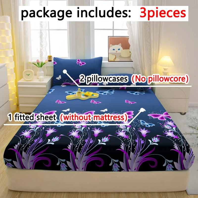 3-piece Simple modern butterfly pattern matte three piece fitted sheet set, bedroom printed bed cover set, bedding