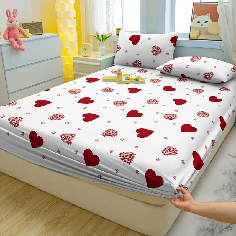3-piece Simple modern Heart-Shaped pattern matte three piece fitted sheet set, bedroom printed bed cover set, bedding