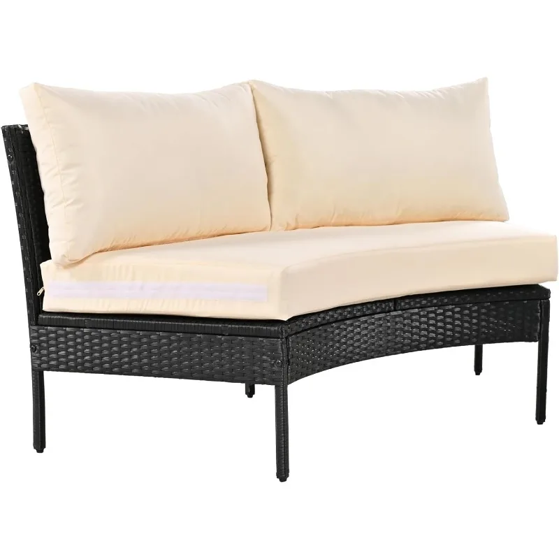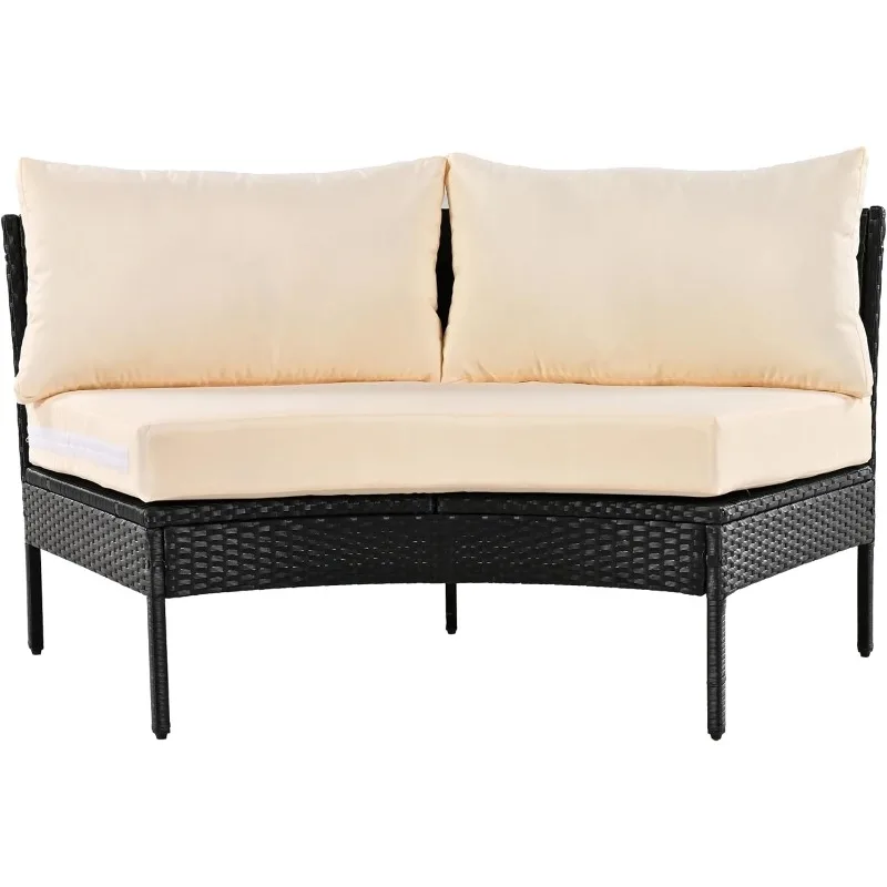 - 🌟[Curved Half Moon Style] – With its trendy aesthetic and functional design, this outdoor half-moon sofa set is the perfect companion for leisure and holiday relaxation. Crafted to create a unique half-moon lounge, it adds a touch of contemporary elegance to any outdoor space. The sleek wicker sofa features a modern yet minimalist design, enhancing the beauty of your courtyard. Step into a new realm of outdoor comfort with our exquisitely crafted curved outdoor sofa, designed to allure and provide utmost relaxation.