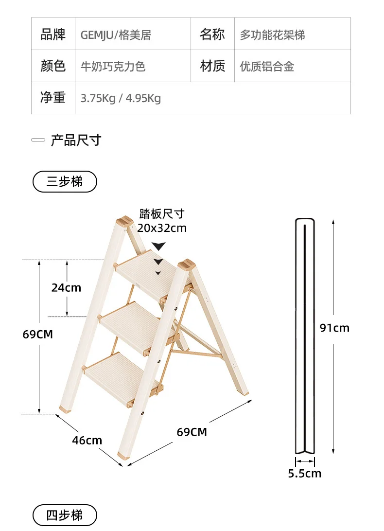 3-Step Aluminum Folding Ladder Sturdy Anti-Slip Step Stool Lightweight Portable Ladder for Household and Garage Use