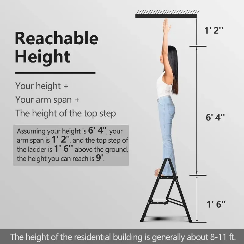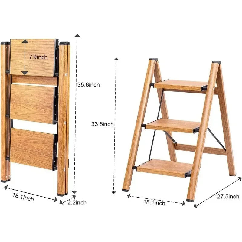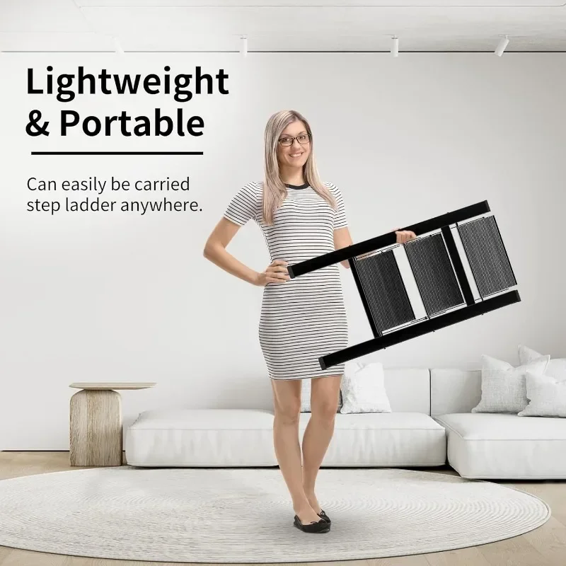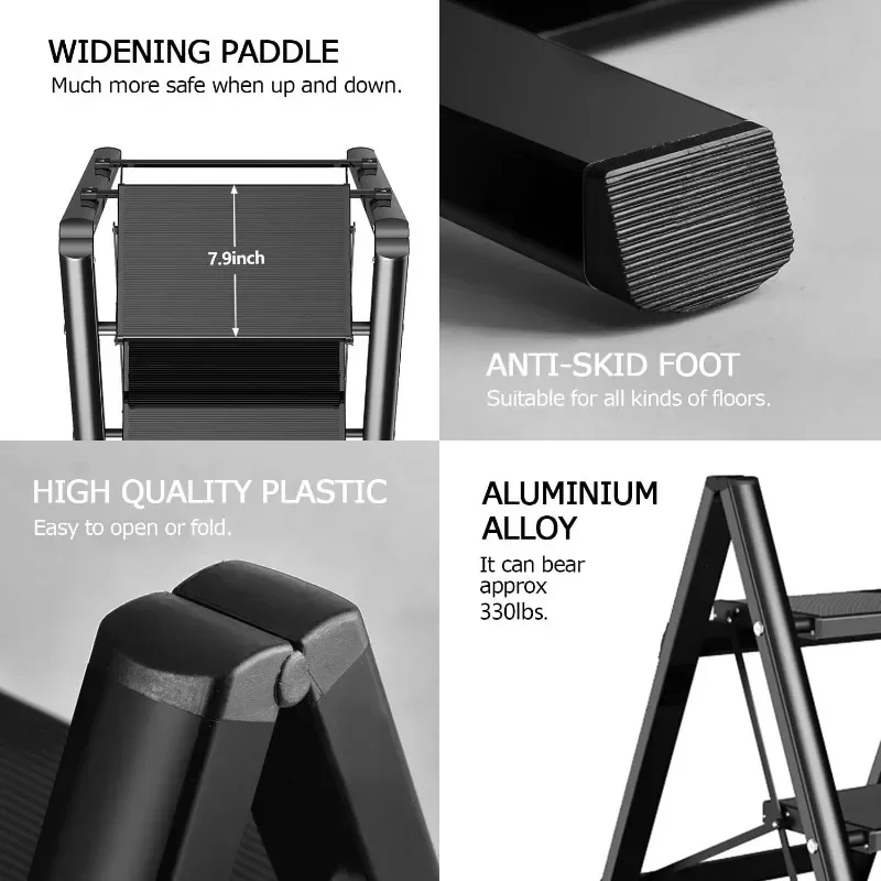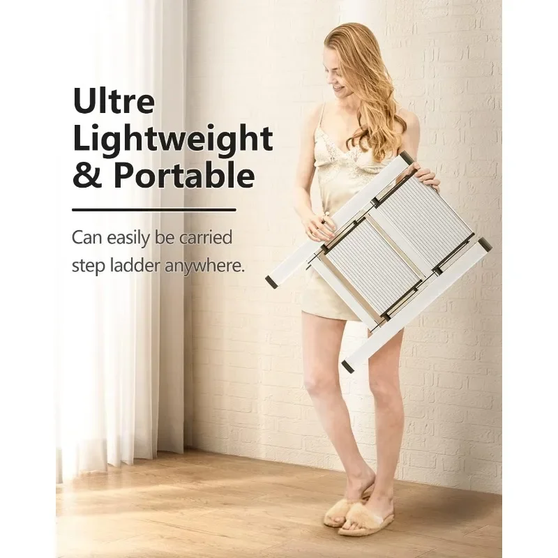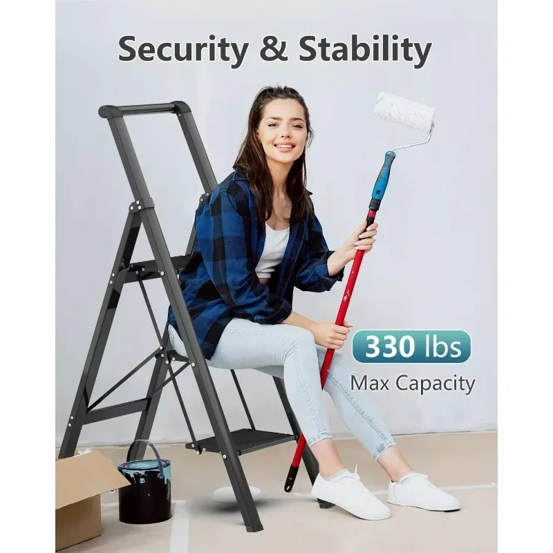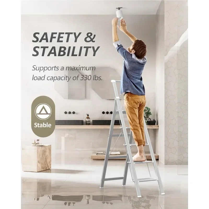 - Stability and Strong Structure – The decorative ladder built from ultra lightweight yet strong, sturdy and durable aluminum frame to meet your needs. The step ladder 3 step folding supports a maximum load capacity of 330 lbs.