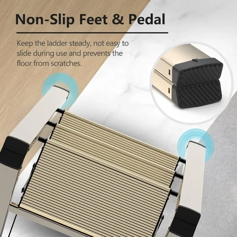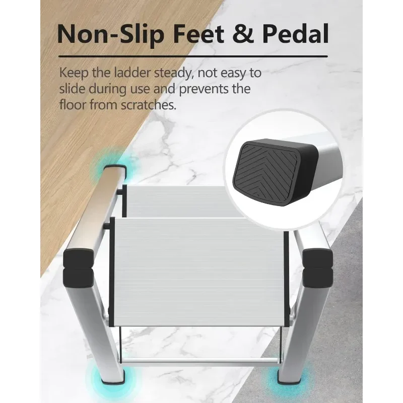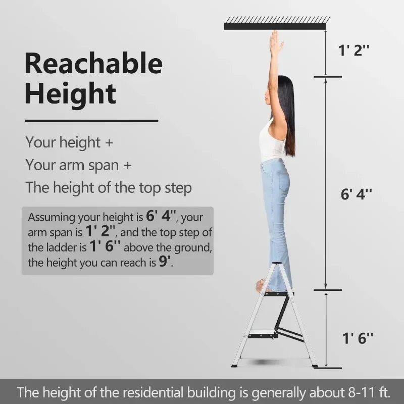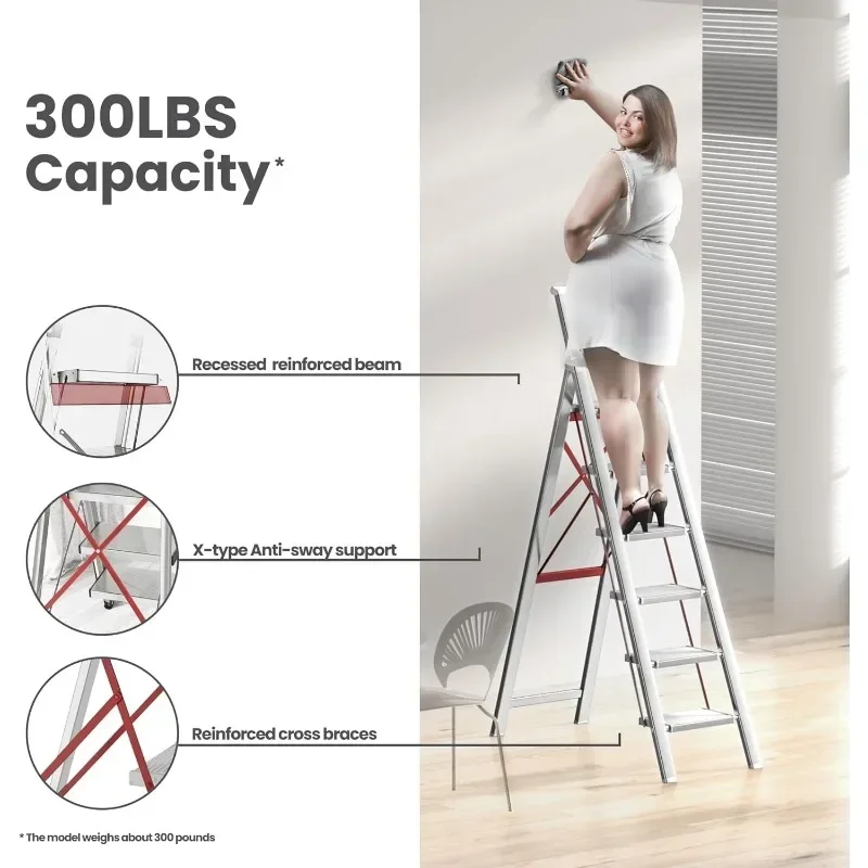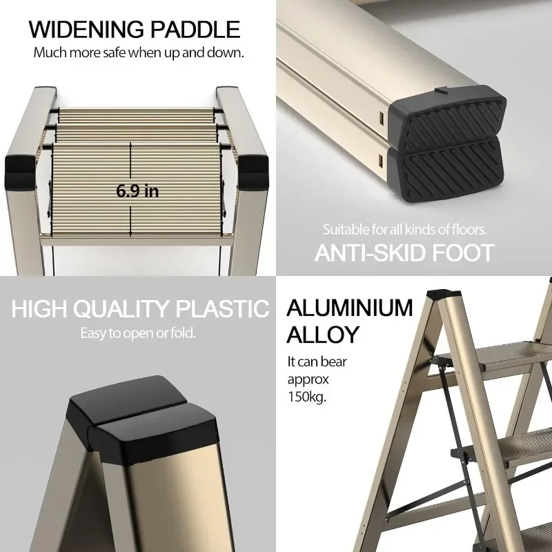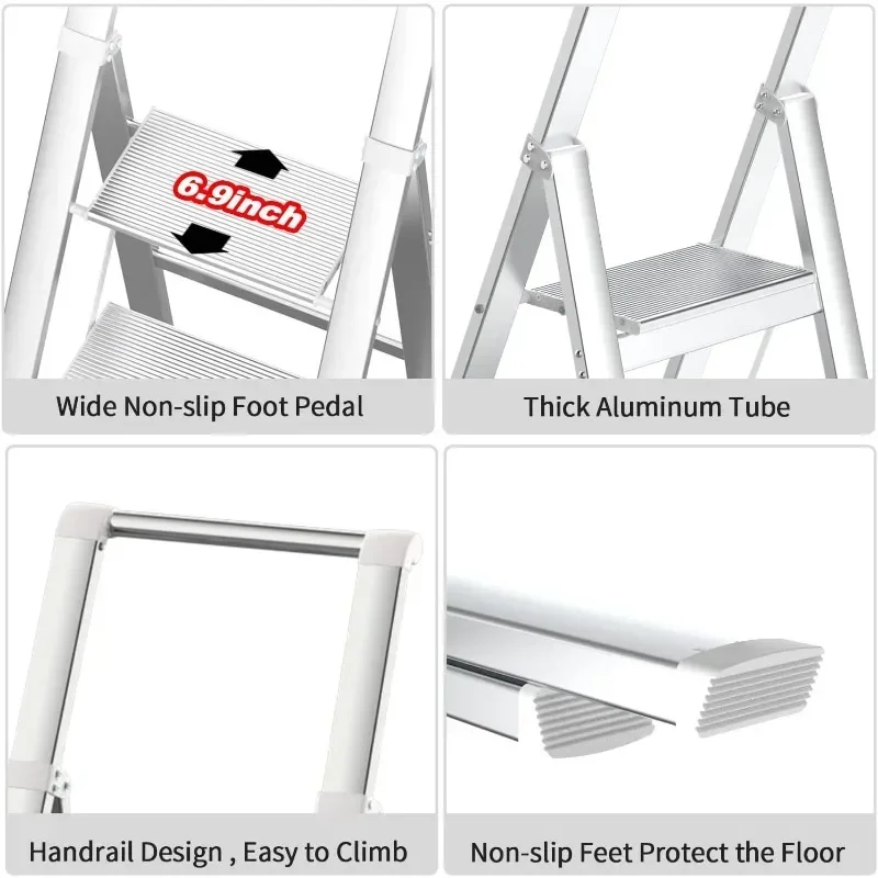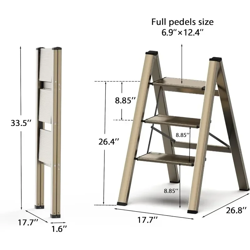 - Stability and Strong Structure – The decorative ladder built from ultra lightweight yet strong, sturdy and durable aluminum frame to meet your needs. The step ladder 3 step folding supports a maximum load capacity of 330 lbs.