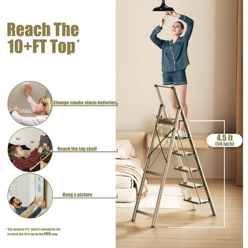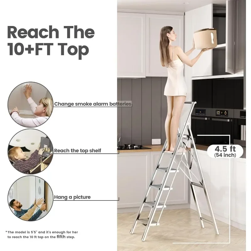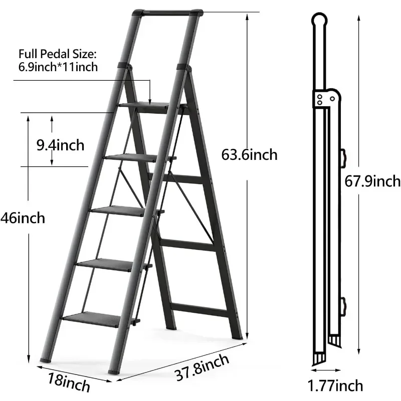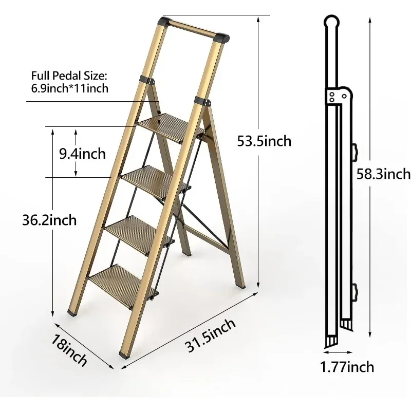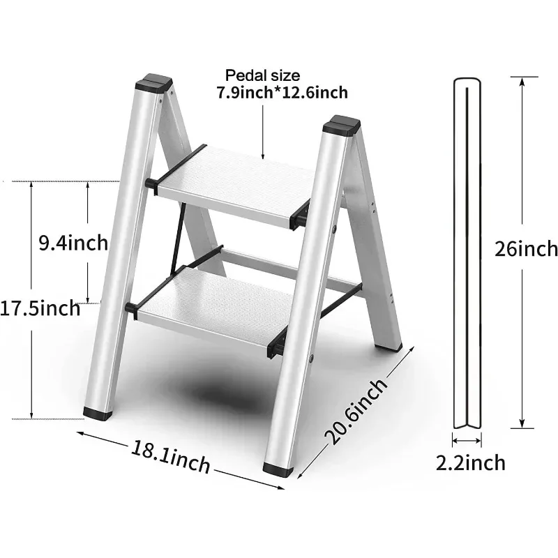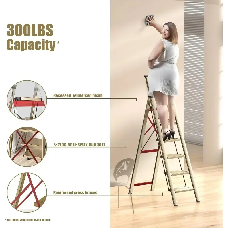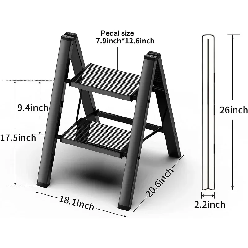 - Stability and Strong Structure – The decorative ladder built from ultra lightweight yet strong, sturdy and durable aluminum frame to meet your needs. The step ladder 3 step folding supports a maximum load capacity of 330 lbs.