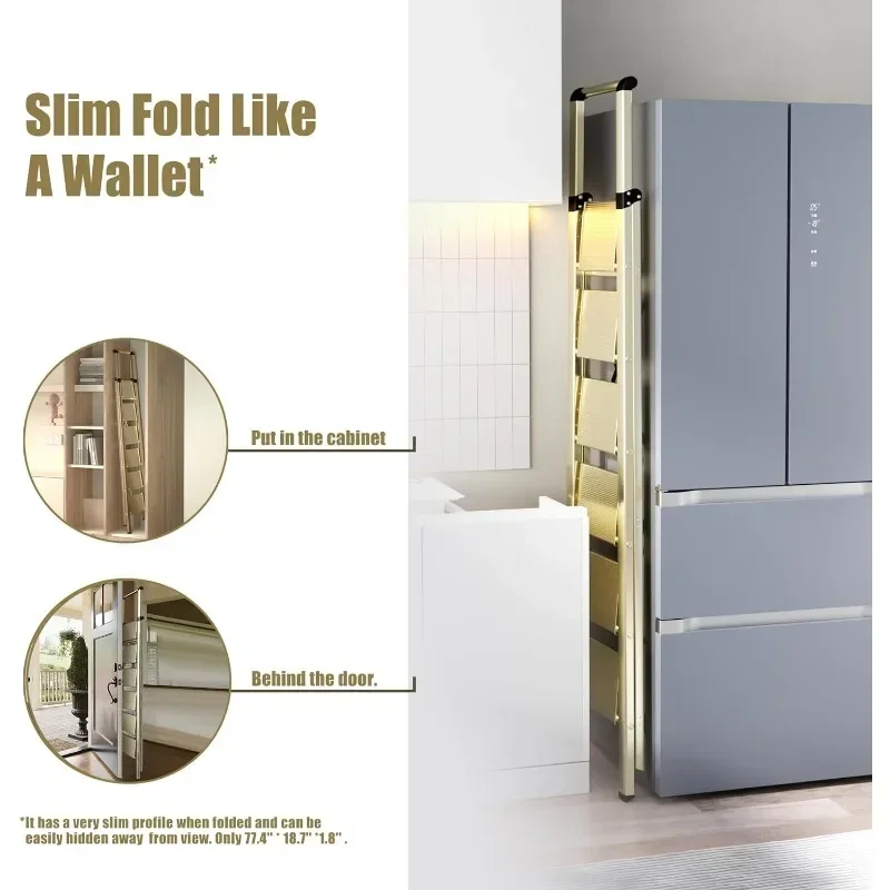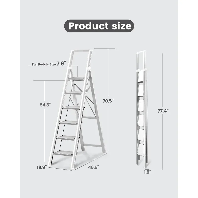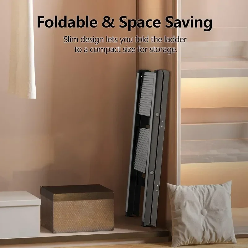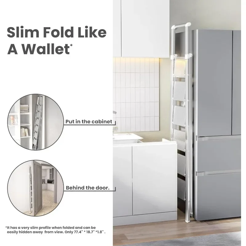 - Lightweight and Space-Saving – The ladder for bookshelf comes fully assembled! Easy folding design for convenient storage and transportation. Unfolded: 31″H X 18″L X 27.1″W, Folded: 35.8″H X 18″L X 2.2″W, Net Weight: 8.8 pounds.