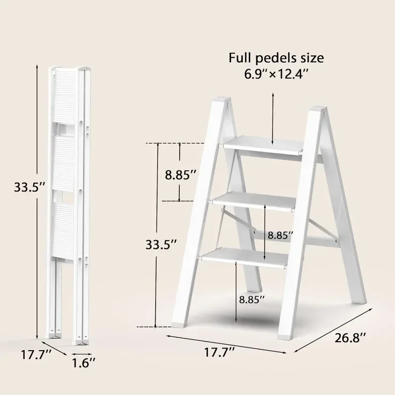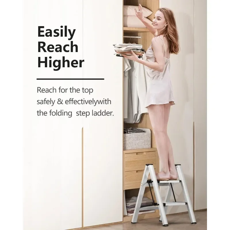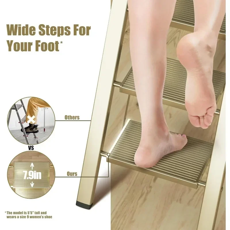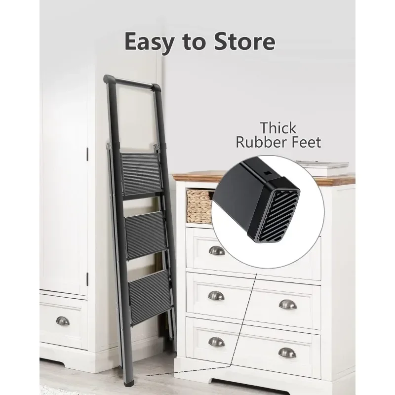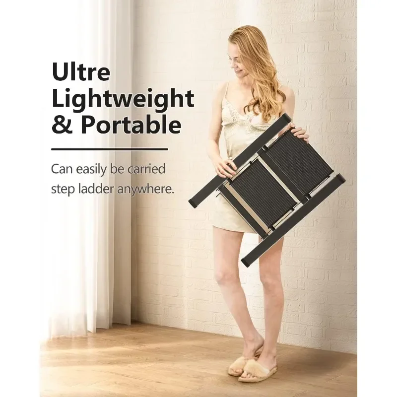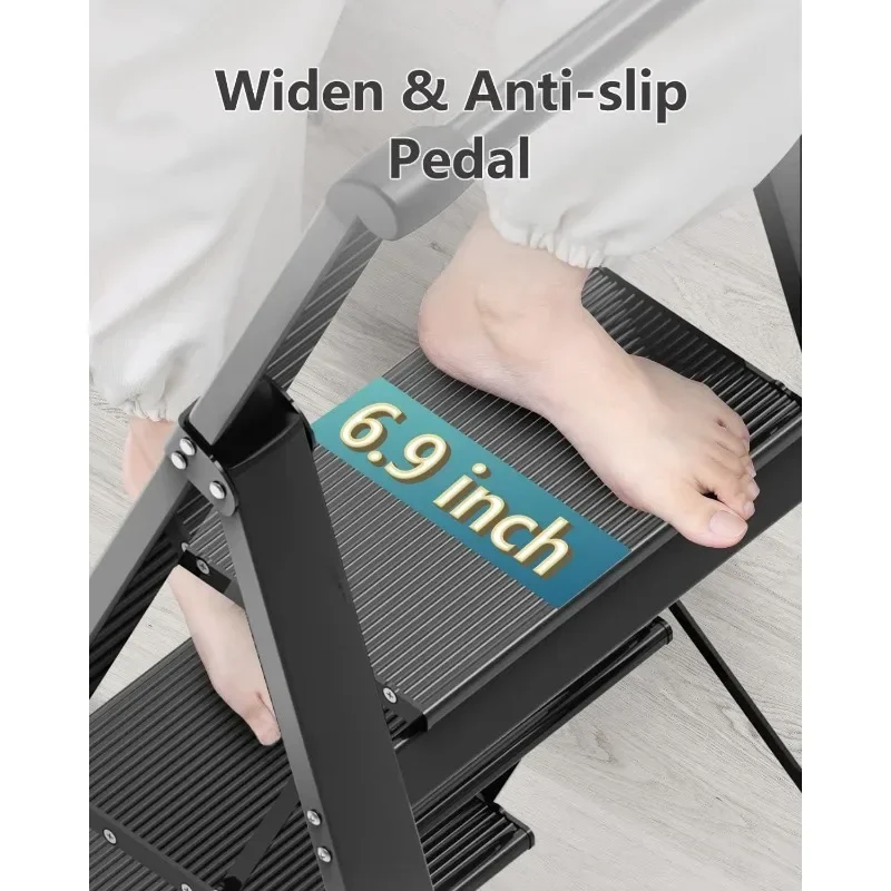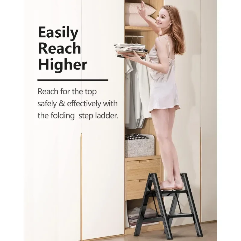 3 Step Ladder Anti-Slip Foldable Step Stool Aluminum Lightweight with Wide Pedal for Home and Kitchen Space Saving